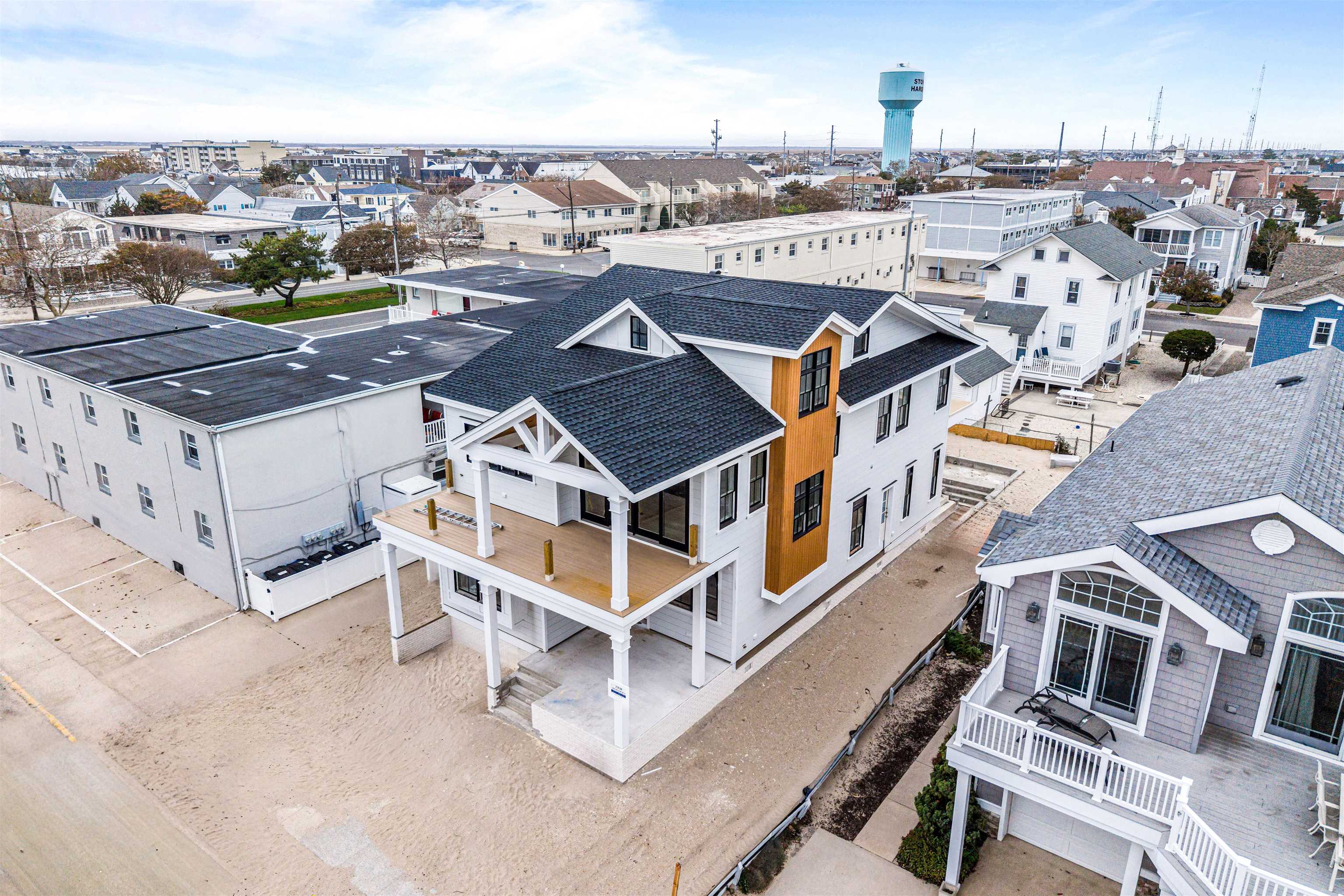 This stunning property is expertly designed and developed by Zatos Investments and ZRM Builders, combining luxury with exceptional craftsmanship. Located just two blocks from the beach and one block from town, 166 99th Street offers a central Stone Harbor location while alternately offering a quiet neighborhood feel, paired with high-end and luxury design and functionality. This new build will feature 5 bedrooms with all with ensuite baths and 2 powder rooms, along with an incredible entertaining area on the first floor overlooking the pool. The first floor features 3 bedrooms with ensuite baths, including a bunk room. A thoughtfully placed powder room is accessible from both the pool area and the interior, servicing the spacious family room. The rear family room spans the full width of the home and includes a full bar with custom cabinetry by DeRita Woodworking, plus a wall of Marvin bi-fold sliders that open directly onto the rear patio and pool deck. Outside, the pool will include a sun shelf and hot tub centered on a cabana. A fully equipped laundry room completes the first floor. Interior selections include ¾” wide plank white oak flooring, with premium tile and plumbing fixtures throughout. The second floor offers a fully equipped chef’s kitchen with Sub-Zero and Wolf panel-ready appliances, a Cove dishwasher, a 24” beverage center, and custom cabinetry by DeRita Woodworking, with island seating. The family room is centered on a gas fireplace, with a dining area positioned just off the kitchen. A large front deck provides plenty of space for dining and lounging, with ocean views just steps away. A second powder room is tucked behind the kitchen to service guests. The fourth ensuite bedroom sits toward the rear of the home, along with an expansive primary suite with an ensuite bath, featuring a private deck overlooking the pool. The home will feature a substantial interior trim package, high-end finishes throughout, ACRE Borrell nickel gap siding, and Anderson 400 Series windows for both durability and aesthetic appeal. While many selections have been made in collaboration with a designer, there is still time to personalize finishes. Photos in listing are renderings of the completed project, which is in the process of being built. Contact agent for progress updates