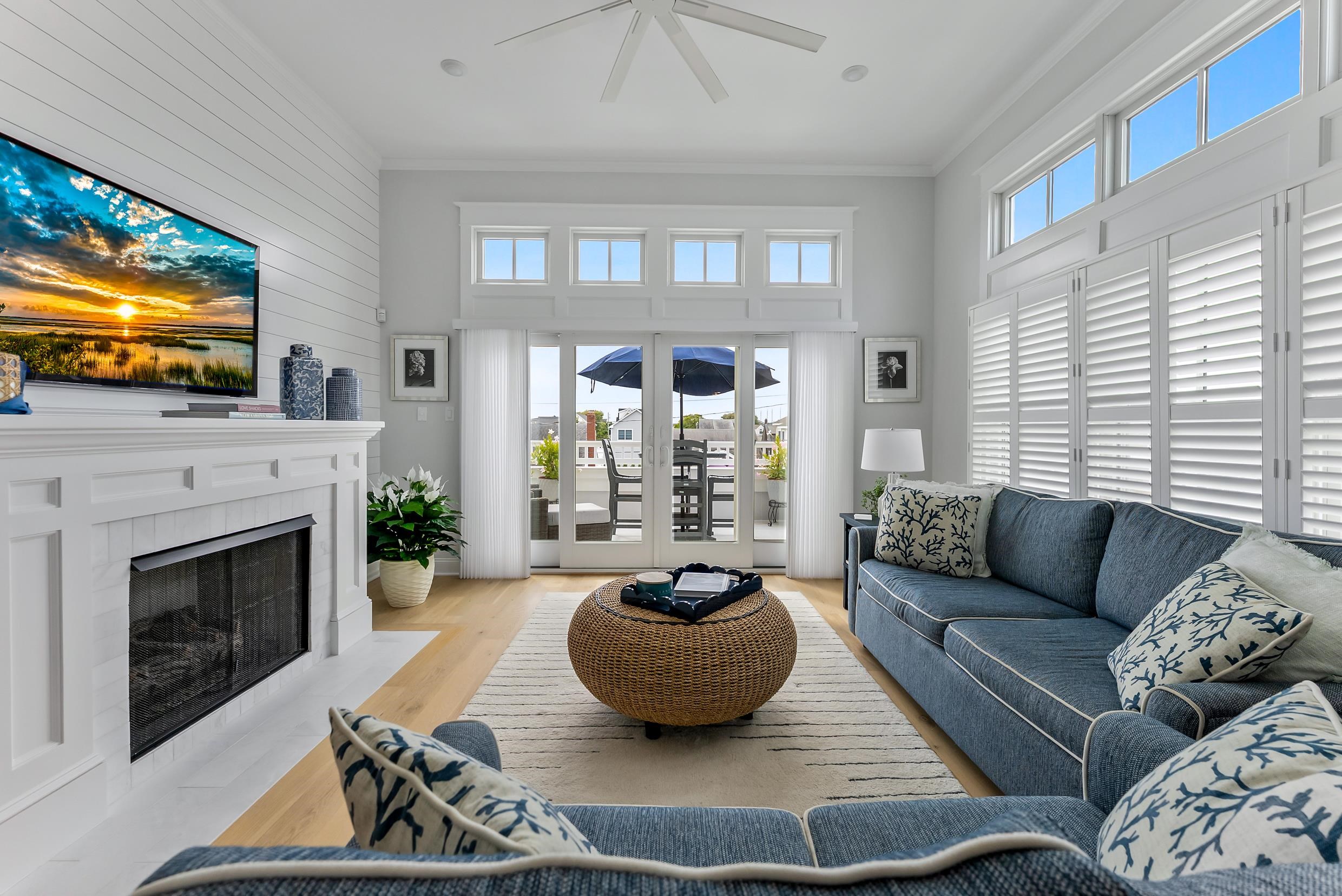 Welcome to 253 35th Street - this beautiful 3 story townhome is only 2 years old, fully furnished and decorated and ready for your family's summer enjoyment or as a high yeilding rental investment property, or both! This ideally located 35th Street home is a short walk into downtown Avalon, 2.5 blocks to the beach, half block to the bay and offers peaceful bay and sunset views. This newer townhome design from Welsh Builders offers outstanding curb appeal, with pale gray and white trimmed facade, azek rails, fiberglass decks and brick clad foundation. From the street you notice the raised first floor elevation and two large fiberglass decks, first floor deck is covered and enclosed with a ceiling fan, second floor is open and offers views both east and especially west of the sunset and bay. At the ground level there is a one car storage garage at the front which flows back to a large cabana type space in the rear --opening out to the pool, with comfortable furnishings, a retro refrigerator/freezer and a cable hookup for indoor/outdoor TV if desired. The private pool area is furnished with Frontgate slingback chairs as well as Adirondack seating and enclosed by privacy landscaping. Upon entering the home's first level the foyer leads left to two ample sized bedrooms , one decorated with 2 (electric operated Tempurpedic) twin beds and one with a full queen bed. This level offers a full bath and a generously sized family room at the front of the home with a barn style sliding door for privacy and a full queen size pullout sofa --doubling as a 5th bedroom for overflow guests if needed. This room also has sliders opening onto the covered porch. Moving upstairs to the main second floor of the home is the open flow kitchen-dining-living area, as well as a full sized laundry room and powder room. The kitchen offers a full bar with ample cabinetry as well as a wine cooler and an osmosis water filter. The kitchen is attractively finished with white stone counters, white brick subway tile backsplash, ample cabinetry, high end appliances and fully equipped to meet the requirements of the most demanding of chefs and foodies. The home is outfitted with hardwood floors throughout every level and the interior stairwells as well the living room wall and master br wall are finished with beautiful white shiplap giving the space a cohesive finish. Beyond the open kitchen through the dining area and uplevel is the sophisticated living space with tall ceilings and a beautiful white natural gas fireplace covered in craftsman wood and tile. The bright southern light peers through the high transom windows and wide sliding doors to the large open fiberglass deck. On the top third level you will enjoy the privacy of your own fully outfitted master suite plus an additional bedroom with it's own full bath. This property affords all of the amenities you will need for a perfect Avalon Beach getaway. With beach access down the block via the 35th St. path, Bay Views, expansive decks, a private heated pool and a luxurious outside shower, this home the ideal blend of luxury and modern shore living. This newer 2 year young home comes furnished and decorated with white wood blinds on all the windows, silhouettes on sliders, (3) large screen TVs in the living areas and master suite, and hung TVs in 2 add'l brs.. ready for your immediate 2026 summer enjoyment...the proverbial -- just bring your toothbrush!