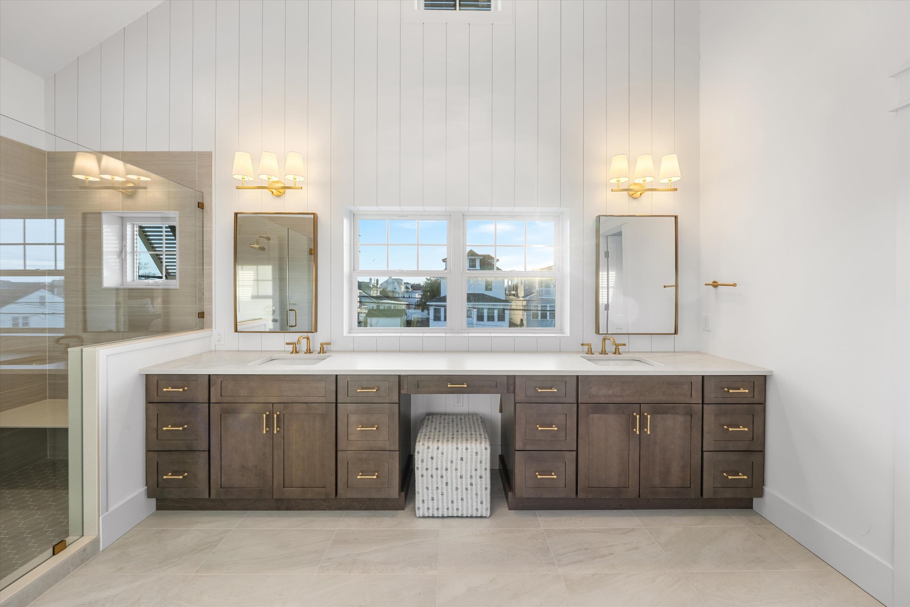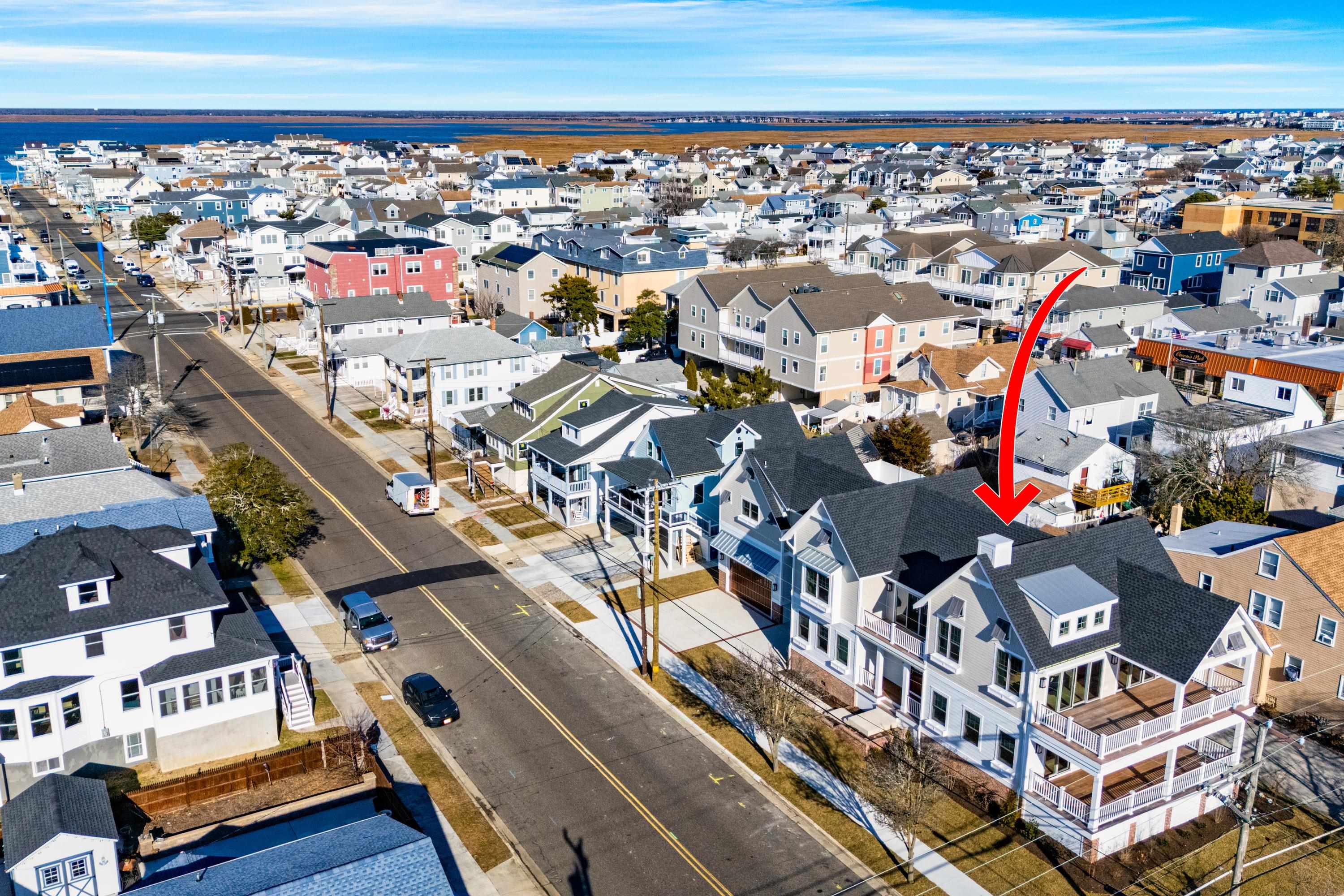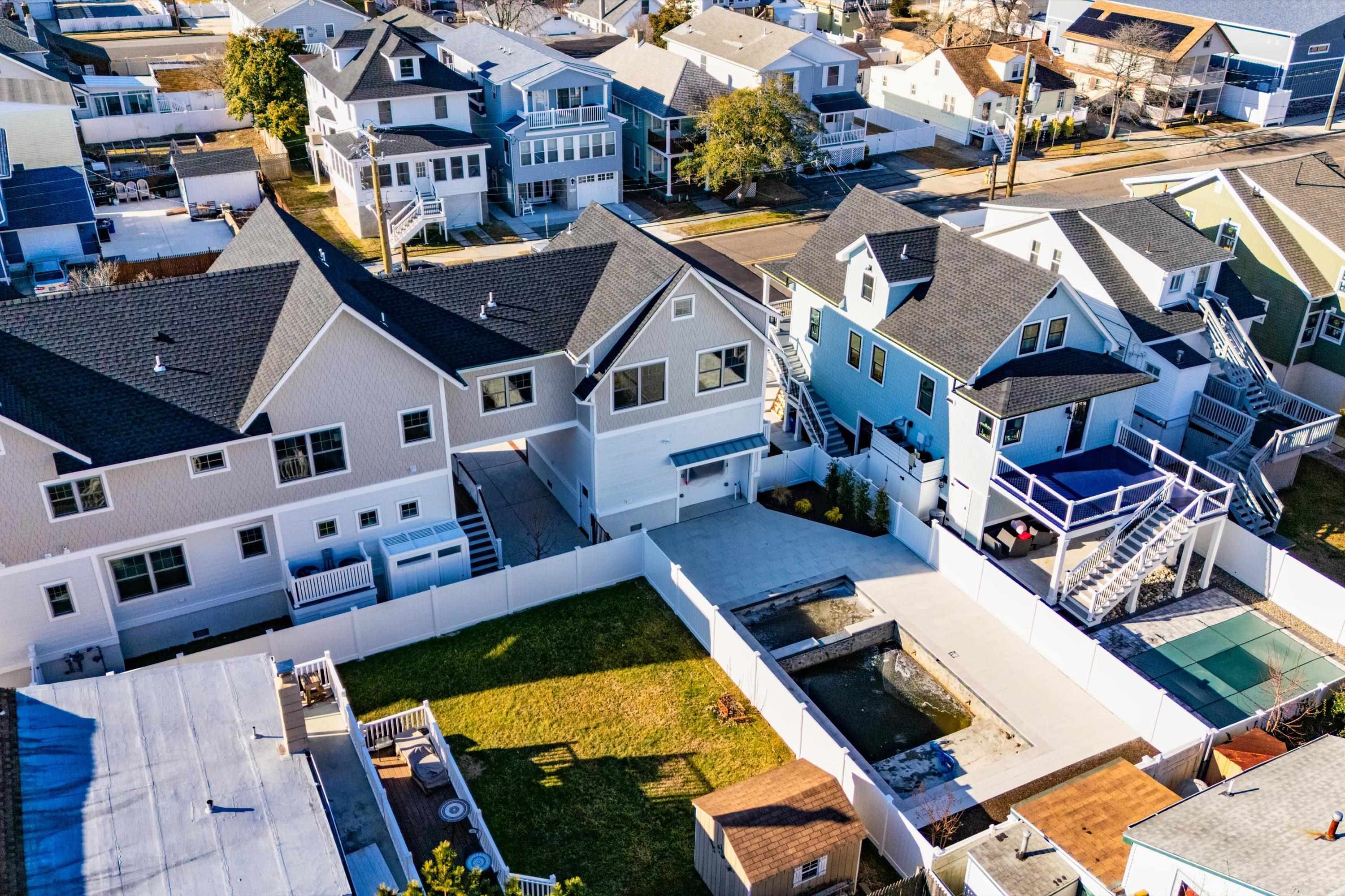 Welcome to 1712 Central Avenue. This thoughtfully envisioned and masterfully executed estate sets a new standard for refined North Wildwood living. Designed by Bishop and Smith Architects and constructed with exceptional craftsmanship by Vallese Builders, this remarkable residence offers over 3,900 square feet of meticulously planned living space—ideally suited for hosting family, friends, and large-scale gatherings unlike any other property in town. Classic in style yet modern in function, the home features 7 spacious bedrooms, 5 full bathrooms, 2 powder rooms, and 4 expansive decks totaling over 1,000 square feet. Situated on an oversized, 8,000Sqft "L-shaped" lot this one-of-a-kind property mimics two combined lots. Premium exterior finishes include Hardie® shingle and plank siding, Pella Impervia Morning Sky Gray windows, striking metal roof accents, brick veneer, and rich mahogany decking, delivering durability with timeless coastal appeal. The first level is ideal for family or guest accommodations, offering four generously sized bedrooms, three full bathrooms, a welcoming family room just steps from the pool, a walk-in laundry/mudroom with direct driveway access, and a convenient powder room. The second level impresses with dramatic vaulted ceilings and an open-concept design that creates a grand yet inviting atmosphere. The gourmet kitchen features elegant cabinetry, premium appliances, and an oversized island with seating for five. Adjacent are a spacious dining area and a cozy living room with a gas fireplace, both opening onto a large deck perfect for al fresco entertaining. This level also includes a second laundry room and three additional bedrooms, including a custom-designed bunk room with four full beds. The primary suite occupies its own private wing, accessed through a pocket door that opens into a light-filled breezeway featuring a home office with custom cabinetry, under-counter refrigeration, and a large walk-in closet. The luxurious primary retreat boasts soaring ceilings with V-groove paneling and a spa-inspired bathroom complete with a vertical shiplap accent wall, dual vanities, and a stunning walk-in shower. The crown jewel of the property is its expansive, resort-style backyard, situated on the 30' x 100' “L” section of the lot. This outdoor oasis features a 15' x 30' gunite pool with a sun shelf and spillover spa, generous lounge areas, and a custom wet bar with under-counter refrigeration and a 75inch TV protected by an automatic roll down shutter. All surrounded by beautiful pavers and lush landscaping that will enhance the privacy as it matures. The estate sits on a truly one-of-a-kind 8,000-square-foot lot—a parcel size that would typically accommodate two single-family homes. Perfectly positioned on picturesque, tree-lined Central Avenue, and just a short stroll to the beach, shops, and dining. The home is sold tastefully furnished by Proximity Interior Design. This extraordinary residence offers a rare opportunity to own a legacy estate designed for generations to come. Contact an agent today to set up your private tour.