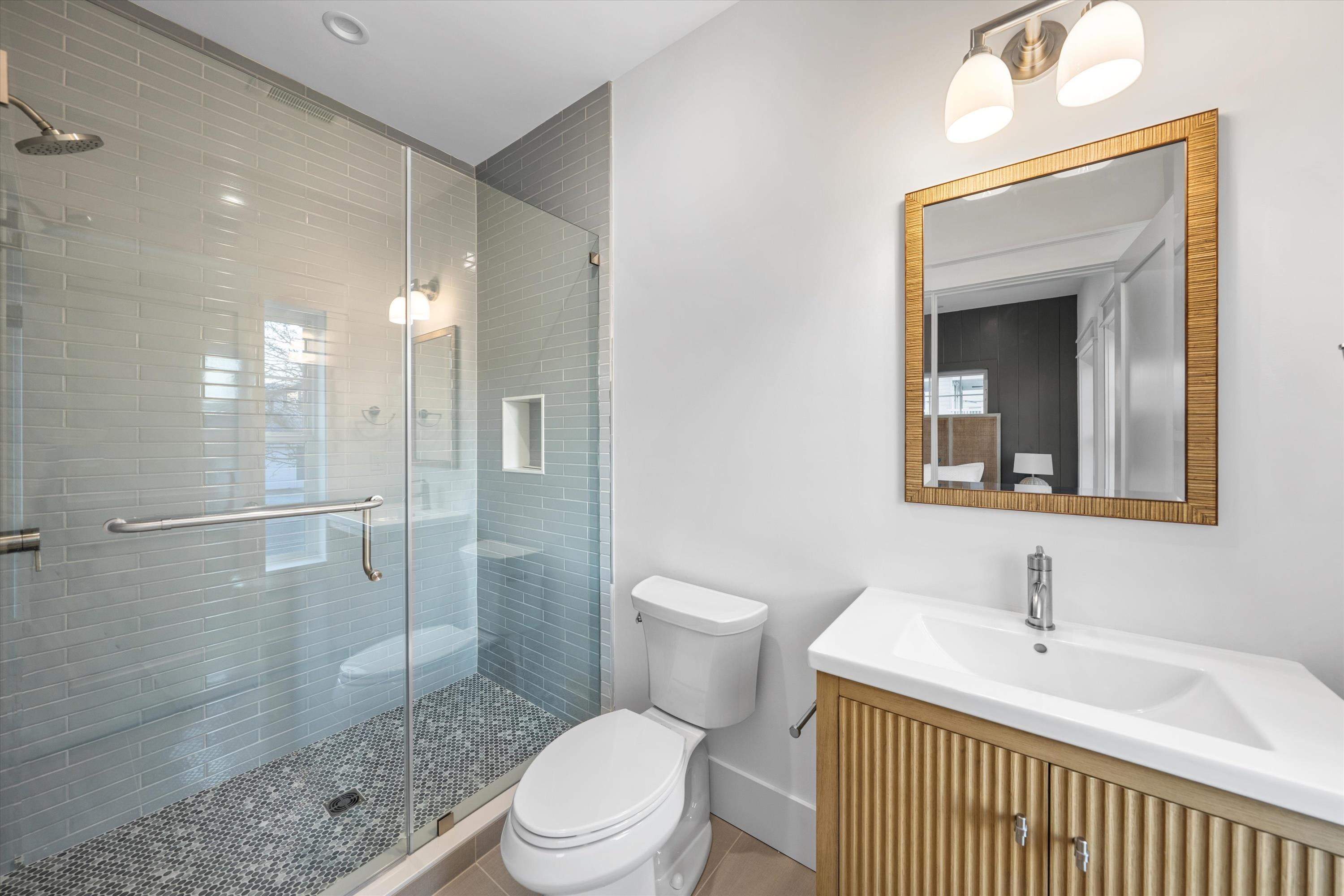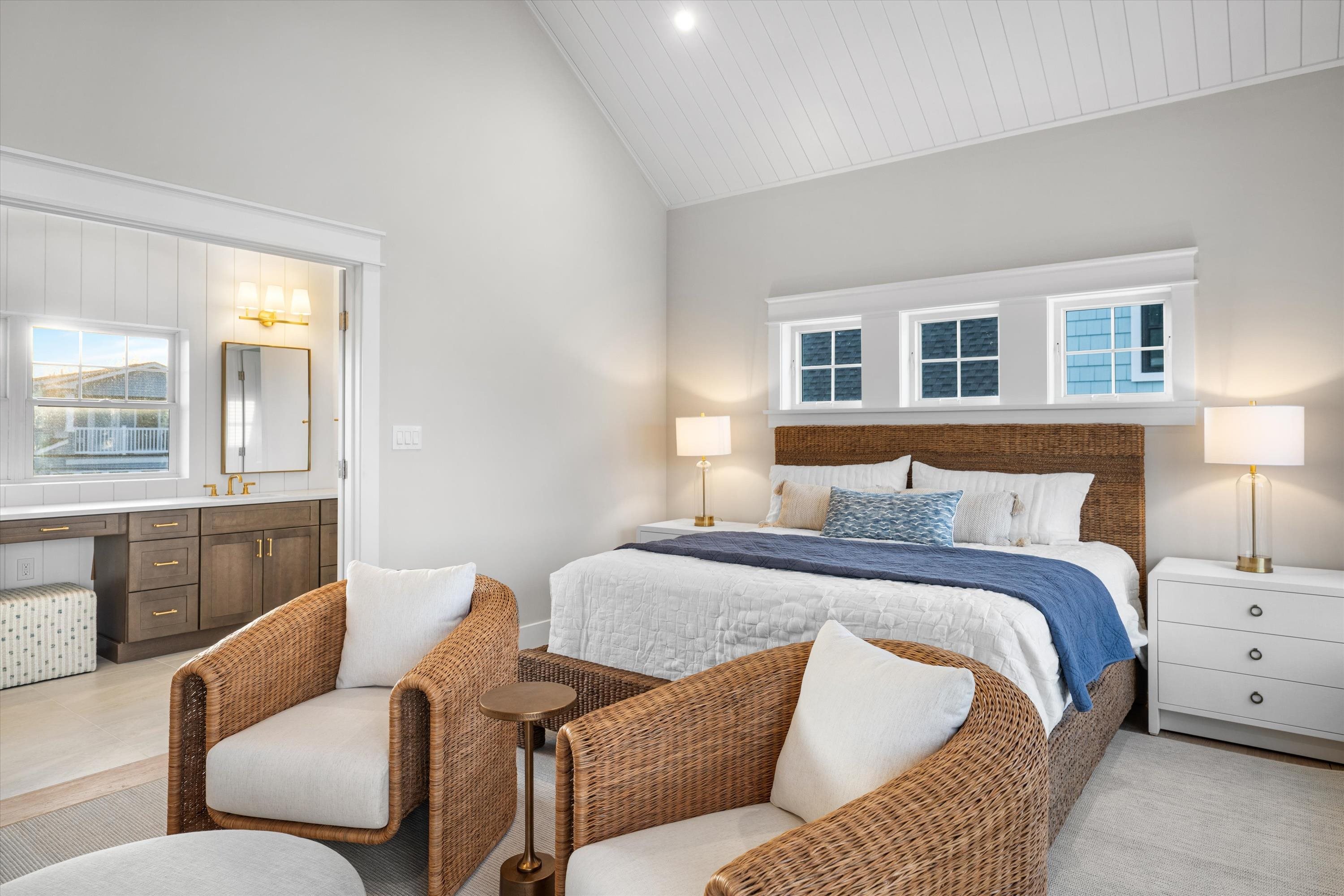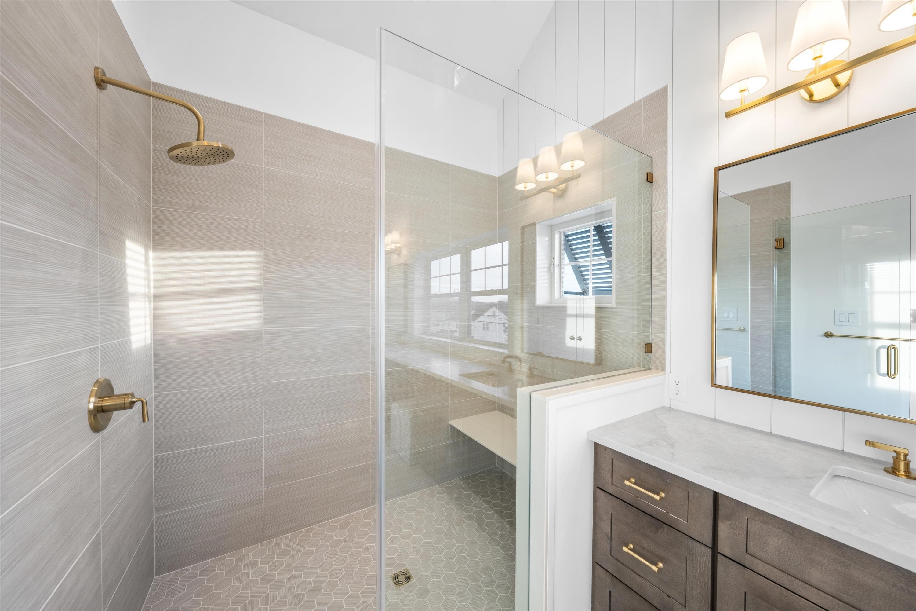 Welcome to 1712 Central Avenue. This thoughtfully envisioned and masterfully executed estate sets a new standard for refined North Wildwood living. Designed by Bishop and Smith Architects and constructed with exceptional craftsmanship by Vallese Builders, this remarkable residence offers over 3,900 square feet of meticulously planned living space—ideally suited for hosting family, friends, and large-scale gatherings unlike any other property in town. Classic in style yet modern in function, the home features 7 spacious bedrooms, 5 full bathrooms, 2 powder rooms, and 4 expansive decks totaling over 1,000 square feet. Situated on an oversized, 8,000Sqft "L-shaped" lot this one-of-a-kind property mimics two combined lots. Premium exterior finishes include Hardie® shingle and plank siding, Pella Impervia Morning Sky Gray windows, striking metal roof accents, brick veneer, and rich mahogany decking, delivering durability with timeless coastal appeal. The first level is ideal for family or guest accommodations, offering four generously sized bedrooms, three full bathrooms, a welcoming family room just steps from the pool, a walk-in laundry/mudroom with direct driveway access, and a convenient powder room. The second level impresses with dramatic vaulted ceilings and an open-concept design that creates a grand yet inviting atmosphere. The gourmet kitchen features elegant cabinetry, premium appliances, and an oversized island with seating for five. Adjacent are a spacious dining area and a cozy living room with a gas fireplace, both opening onto a large deck perfect for al fresco entertaining. This level also includes a second laundry room and three additional bedrooms, including a custom-designed bunk room with four full beds. The primary suite occupies its own private wing, accessed through a pocket door that opens into a light-filled breezeway featuring a home office with custom cabinetry, under-counter refrigeration, and a large walk-in closet. The luxurious primary retreat boasts soaring ceilings with V-groove paneling and a spa-inspired bathroom complete with a vertical shiplap accent wall, dual vanities, and a stunning walk-in shower. The crown jewel of the property is its expansive, resort-style backyard, situated on the 30' x 100' “L” section of the lot. This outdoor oasis features a 15' x 30' gunite pool with a sun shelf and spillover spa, generous lounge areas, and a custom wet bar with under-counter refrigeration and a 75inch TV protected by an automatic roll down shutter. All surrounded by beautiful pavers and lush landscaping that will enhance the privacy as it matures. The estate sits on a truly one-of-a-kind 8,000-square-foot lot—a parcel size that would typically accommodate two single-family homes. Perfectly positioned on picturesque, tree-lined Central Avenue, and just a short stroll to the beach, shops, and dining. The home is sold tastefully furnished by Proximity Interior Design. This extraordinary residence offers a rare opportunity to own a legacy estate designed for generations to come. Contact an agent today to set up your private tour.