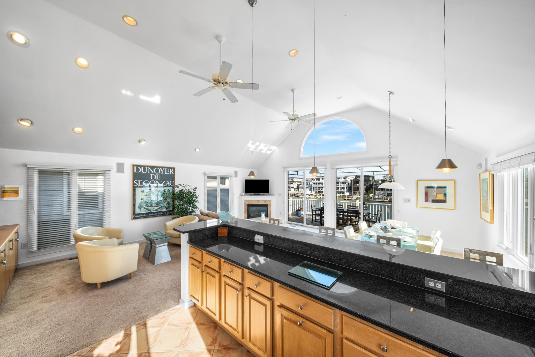 Here’s your opportunity to own a spectacular, three-story bay front home located on a protected Harbor that’s just a short walk into town, and within minutes by boat to the Intra Coastal Waterway and the ocean. As an added bonus, from the street-side decks of the home, you’ll enjoy bay & wetland views and gorgeous views of the setting sun! The South-facing sliding doors on the street-side of the home face the wide-open space to the South of 24th Street (it’s open all the way to 39th Street), thus allowing refreshing breezes! Upon entering the home, you’re greeted by an impressive 9-foot-tall ceiling. On this level, you’ll find 1 Bedroom, 1 Bathroom, a Laundry Room, and a large Family Room that spans the width of the bayside of the home. The Family Room offers doors for extra privacy, a fireplace, a wet bar, built-in speakers and direct access to the pool, patio area and the extensive docking system, which is ready to accommodate your water toys and also allows a refreshing swim in the bay, fishing or crabbing! Back inside, the Laundry Room offers a door for convenient access to the side yard, and you'll appreciate the garage for storage of your beach & boating gear, golf cart and more! At the top of the stairs is the impressive, huge Great Room with tons of natural light and breathtaking views. The ambiance is enhanced by abundant use of glass, a soaring cathedral ceiling, built-in speakers for your favorite tunes and a fireplace. Impressive 8-foot-tall sliding doors connect to the large bayside deck offering beautiful views up & down Princeton Harbor. An exterior staircase connects the deck with the patio area below. The Kitchen features a two-tier counter with seating, and stainless-steel appliances. You’ll also find two bedrooms and one bathroom. The street-side bedroom offers wetland views and its own private deck. On the 3rd floor, you’ll find the private Master Suite with its own deck offering panoramic bay, wetland & sunset views and a spacious bathroom with a steam shower and jetted tub!