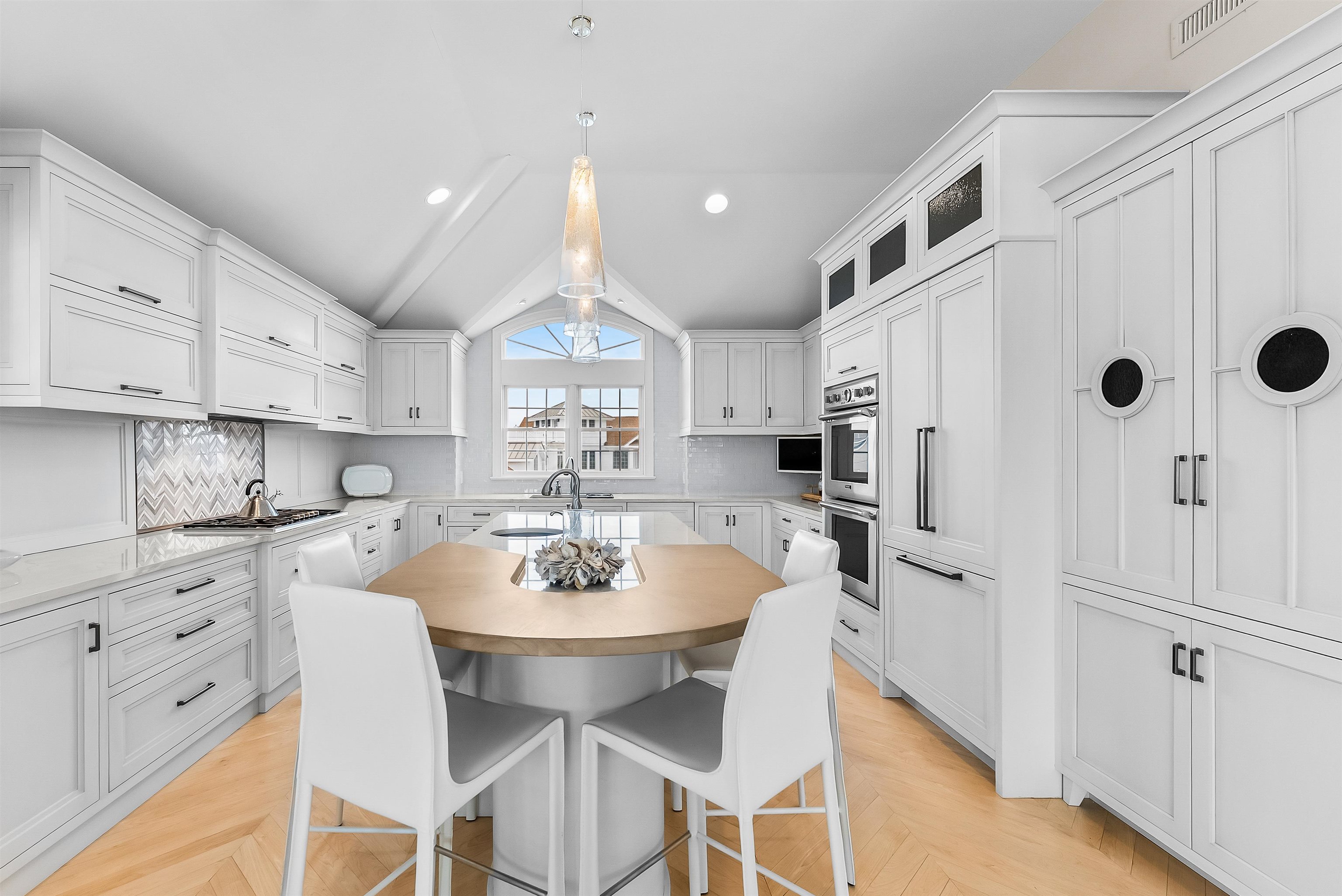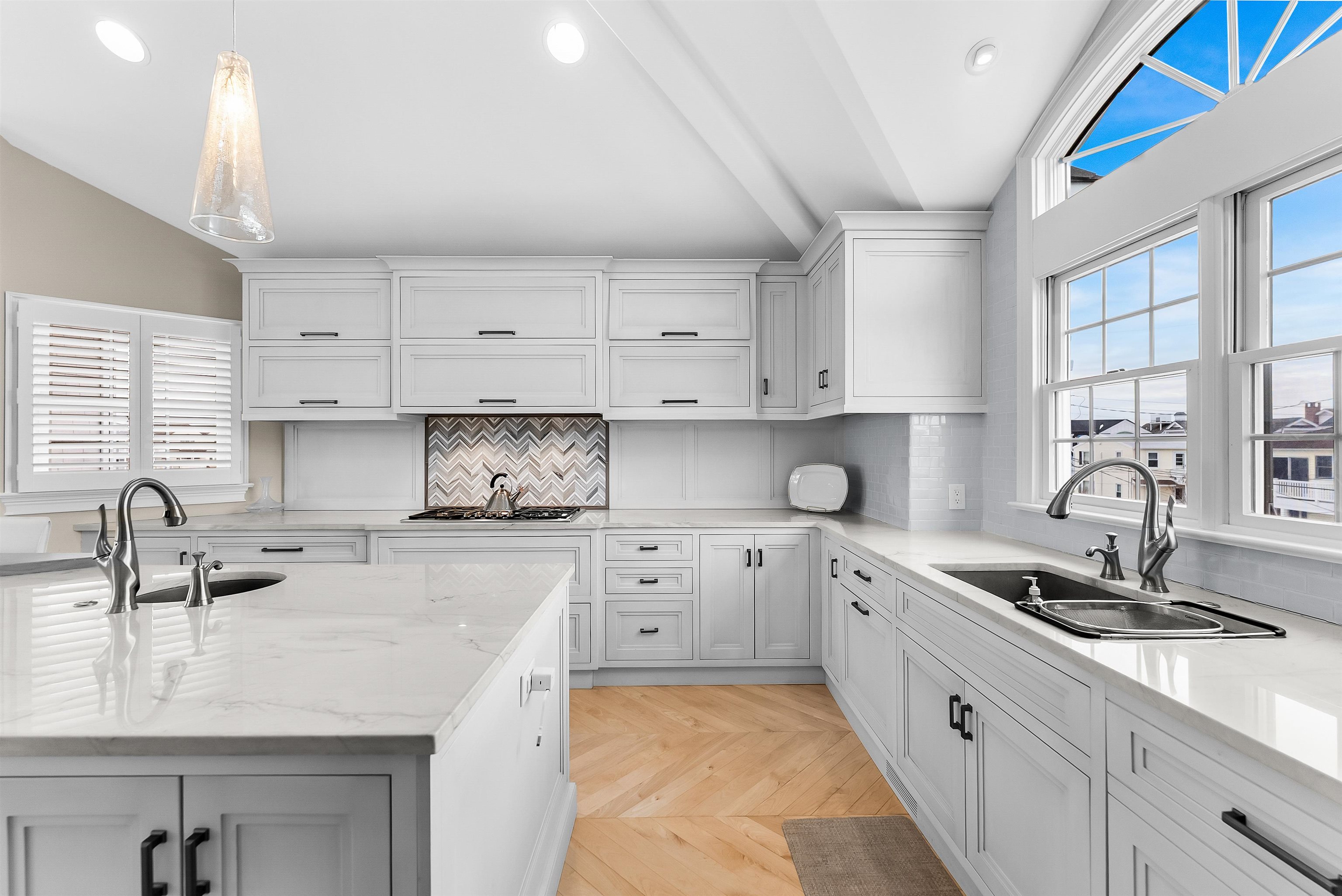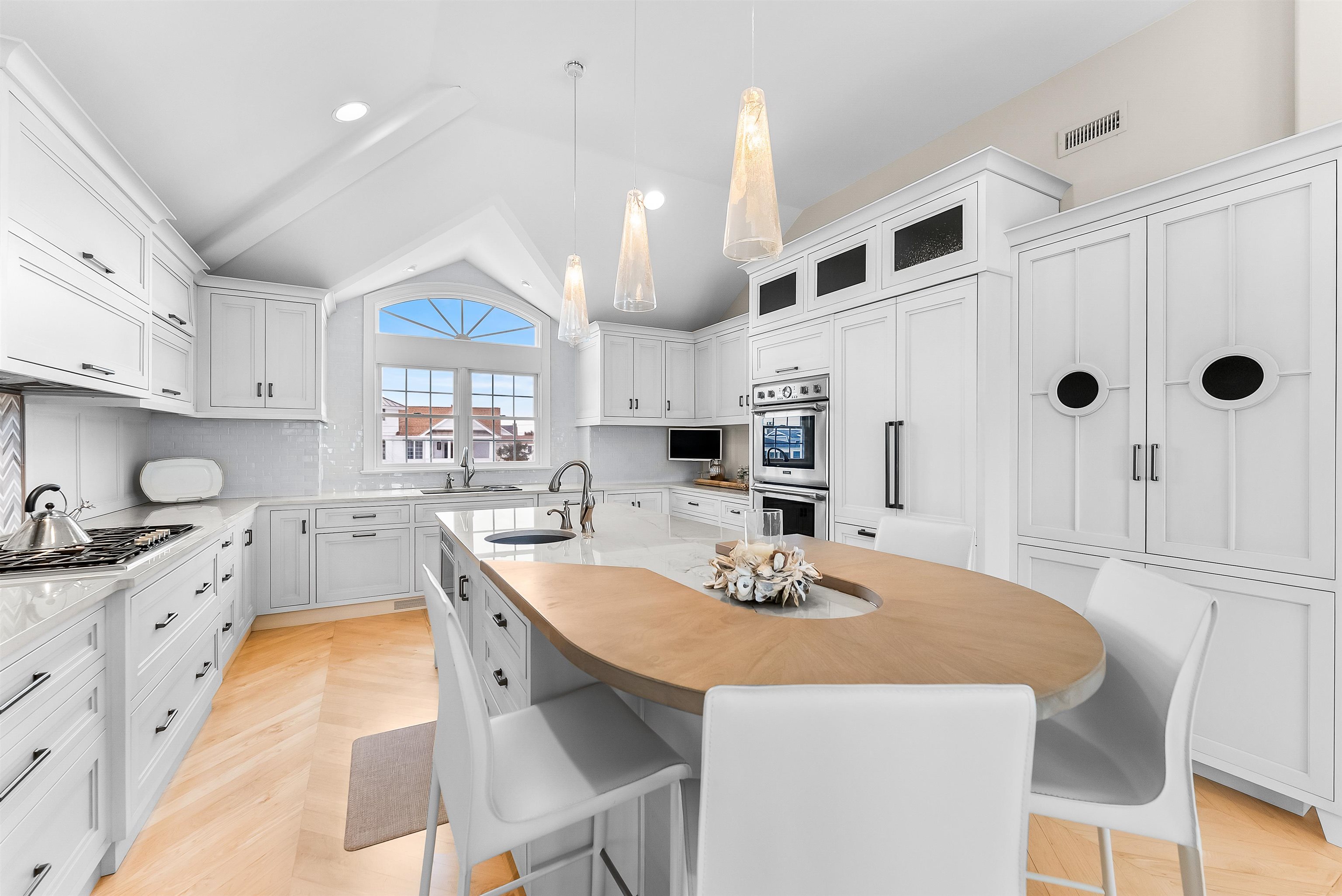 Set on the bay in Stone Harbor, this gorgeous 4-bedroom, 3 and a half bath home offers a luxurious waterfront lifestyle with finishes and features that really stand out. Completely renovated by D.L. Miner, the home blends clean, soft coastal design with a layout built for entertaining and easy living. Outside, enjoy a newer single floating dock and a mahogany bayfront deck that is sheltered by two remotely operated awnings for shade on command. Inside, a stunning two-story foyer opens to the sun-drenched family room complete with a wet bar and floor- to-ceiling views of the bay. There are three bedrooms and two full baths on this level. Two of the bedrooms (one on suite) feature bay views and private decks. This level also offers a full-service laundry room, hardwood floors in the living space, and carpet in the bedrooms. The home features custom plantation shutters and remotely operated blinds. An attached one car garage provides plenty of room for a car or golf cart, as well as pool chairs, surf boards and storage. The living and dining rooms at the top of the stairs are both elegant and comfortable – perfect for entertaining or relaxing. There is a gorgeous fireplace and large screen television. A generous bayfront deck extends your living space outdoors and brings the beauty of the bay into the home. The adjoining large custom kitchen has quartz counters, a Thermador gas range and refrigerator, multi-level countertops and, of course, magnificent views of the bay. The second floor is anchored to the west by an expansive primary suite with walk in closets and a private deck overlooking the bay. A large primary bath features heated porcelain floors, double sinks, and walk-in shower. A lovely powder room off the living room is convenient for guests. This location is exceptional, a short walk to downtown Stone Harbor’s shops and restaurants, with beautiful bay views that make every summer evening at the shore special.