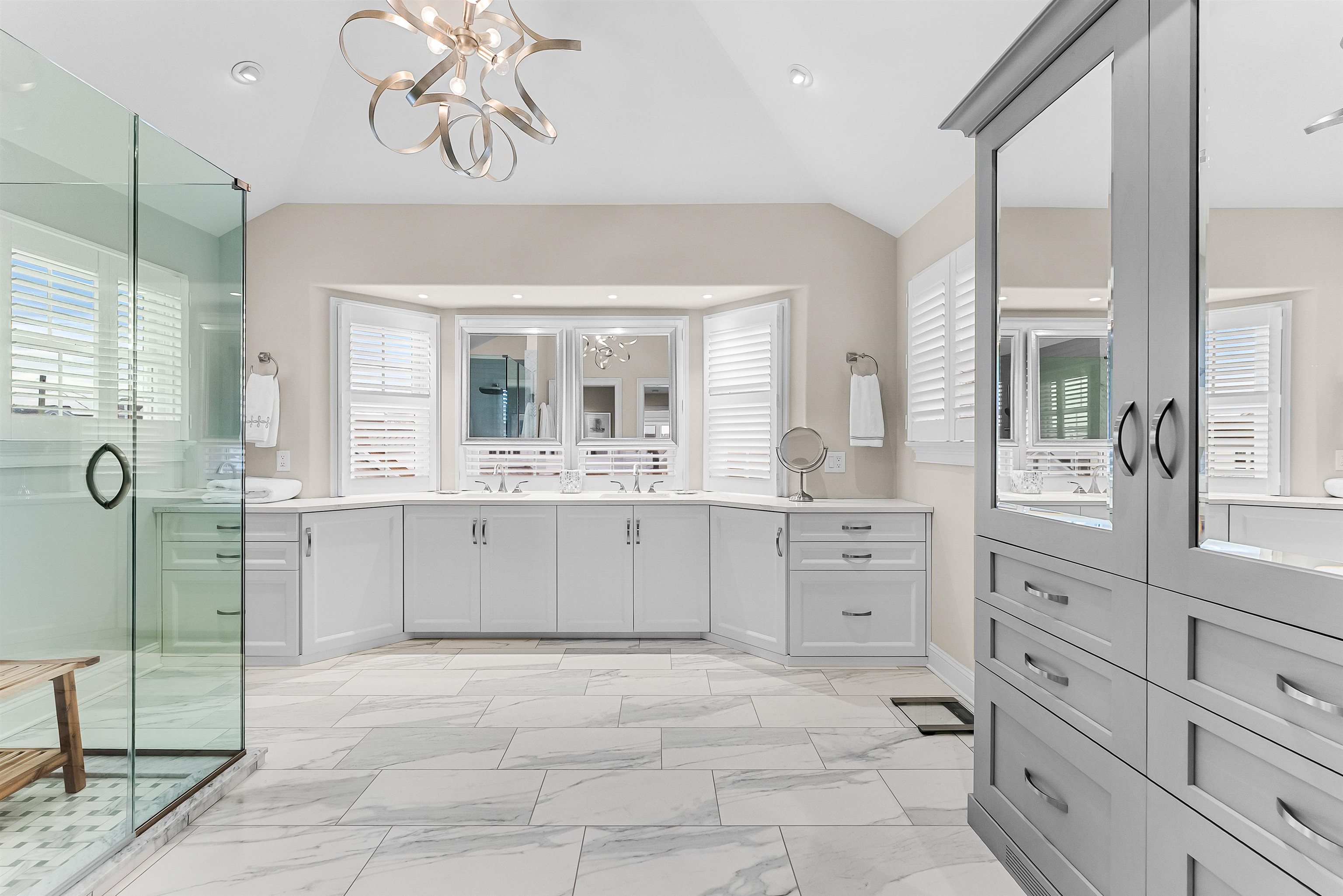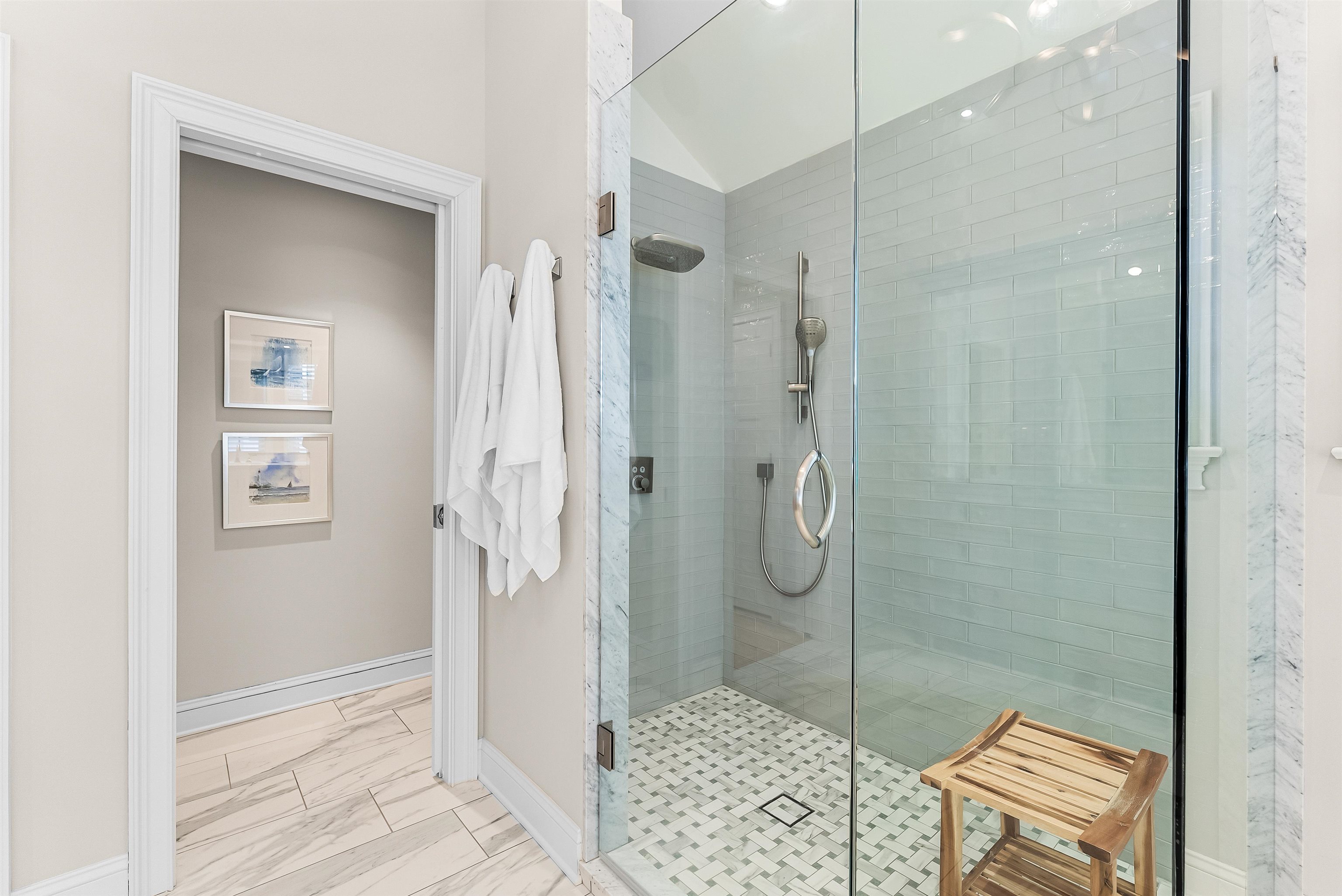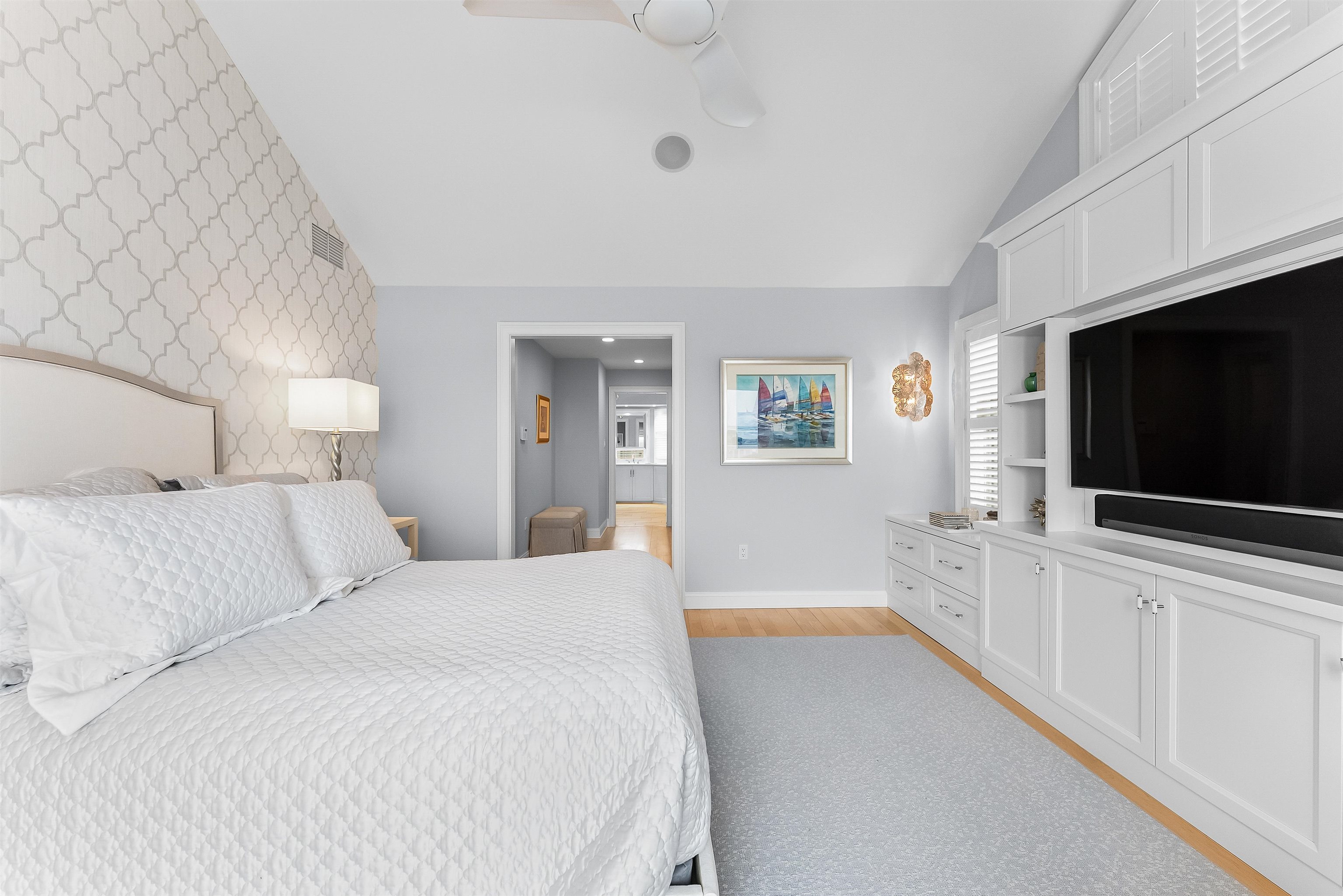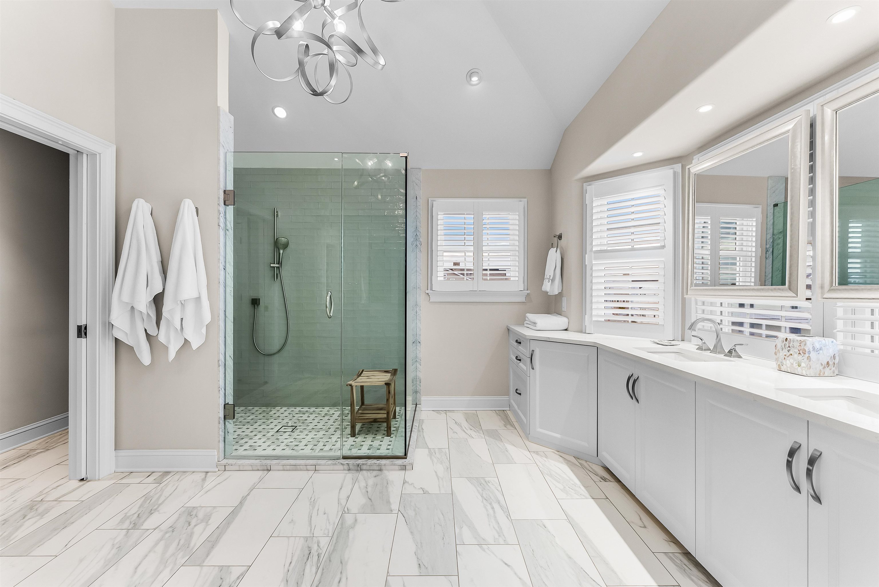Set on the bay in Stone Harbor, this gorgeous 4-bedroom, 3 and a half bath home offers a luxurious waterfront lifestyle with finishes and features that really stand out. Completely renovated by D.L. Miner, the home blends clean, soft coastal design with a layout built for entertaining and easy living. Outside, enjoy a newer single floating dock and a mahogany bayfront deck that is sheltered by two remotely operated awnings for shade on command. Inside, a stunning two-story foyer opens to the sun-drenched family room complete with a wet bar and floor- to-ceiling views of the bay. There are three bedrooms and two full baths on this level. Two of the bedrooms (one on suite) feature bay views and private decks. This level also offers a full-service laundry room, hardwood floors in the living space, and carpet in the bedrooms. The home features custom plantation shutters and remotely operated blinds. An attached one car garage provides plenty of room for a car or golf cart, as well as pool chairs, surf boards and storage. The living and dining rooms at the top of the stairs are both elegant and comfortable – perfect for entertaining or relaxing. There is a gorgeous fireplace and large screen television. A generous bayfront deck extends your living space outdoors and brings the beauty of the bay into the home. The adjoining large custom kitchen has quartz counters, a Thermador gas range and refrigerator, multi-level countertops and, of course, magnificent views of the bay. The second floor is anchored to the west by an expansive primary suite with walk in closets and a private deck overlooking the bay. A large primary bath features heated porcelain floors, double sinks, and walk-in shower. A lovely powder room off the living room is convenient for guests. This location is exceptional, a short walk to downtown Stone Harbor’s shops and restaurants, with beautiful bay views that make every summer evening at the shore special.