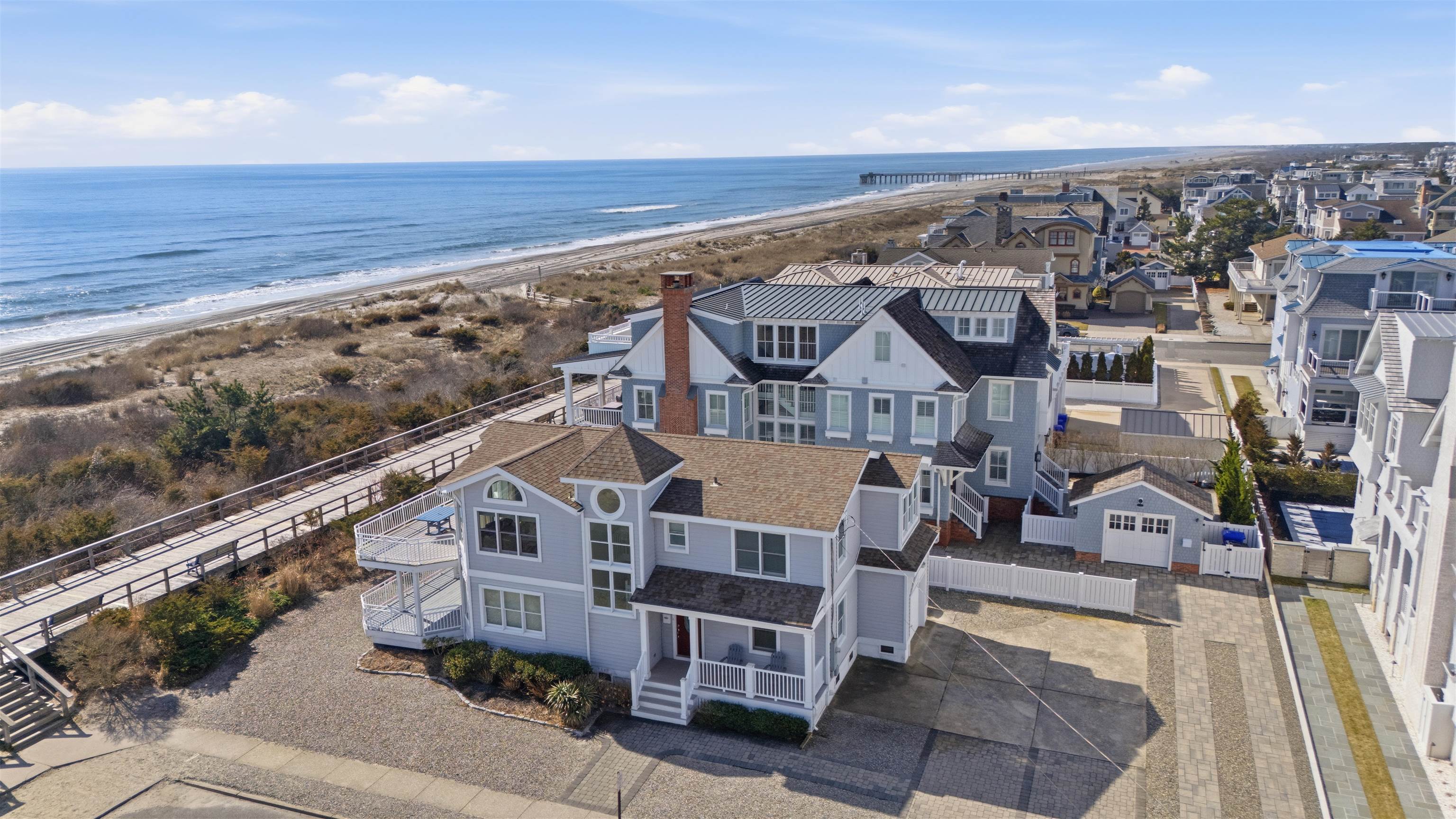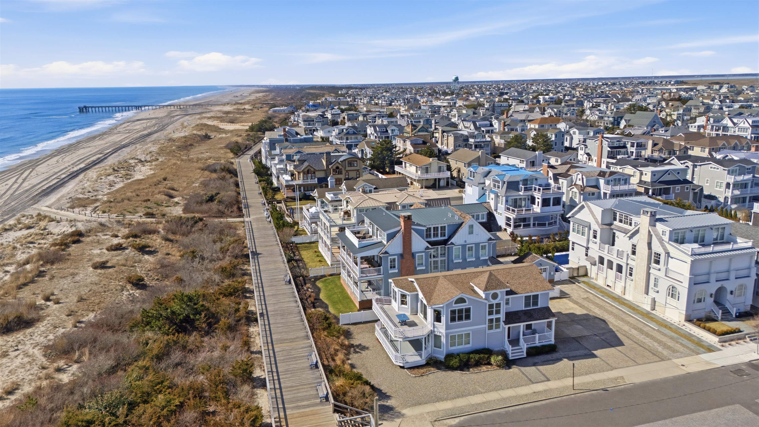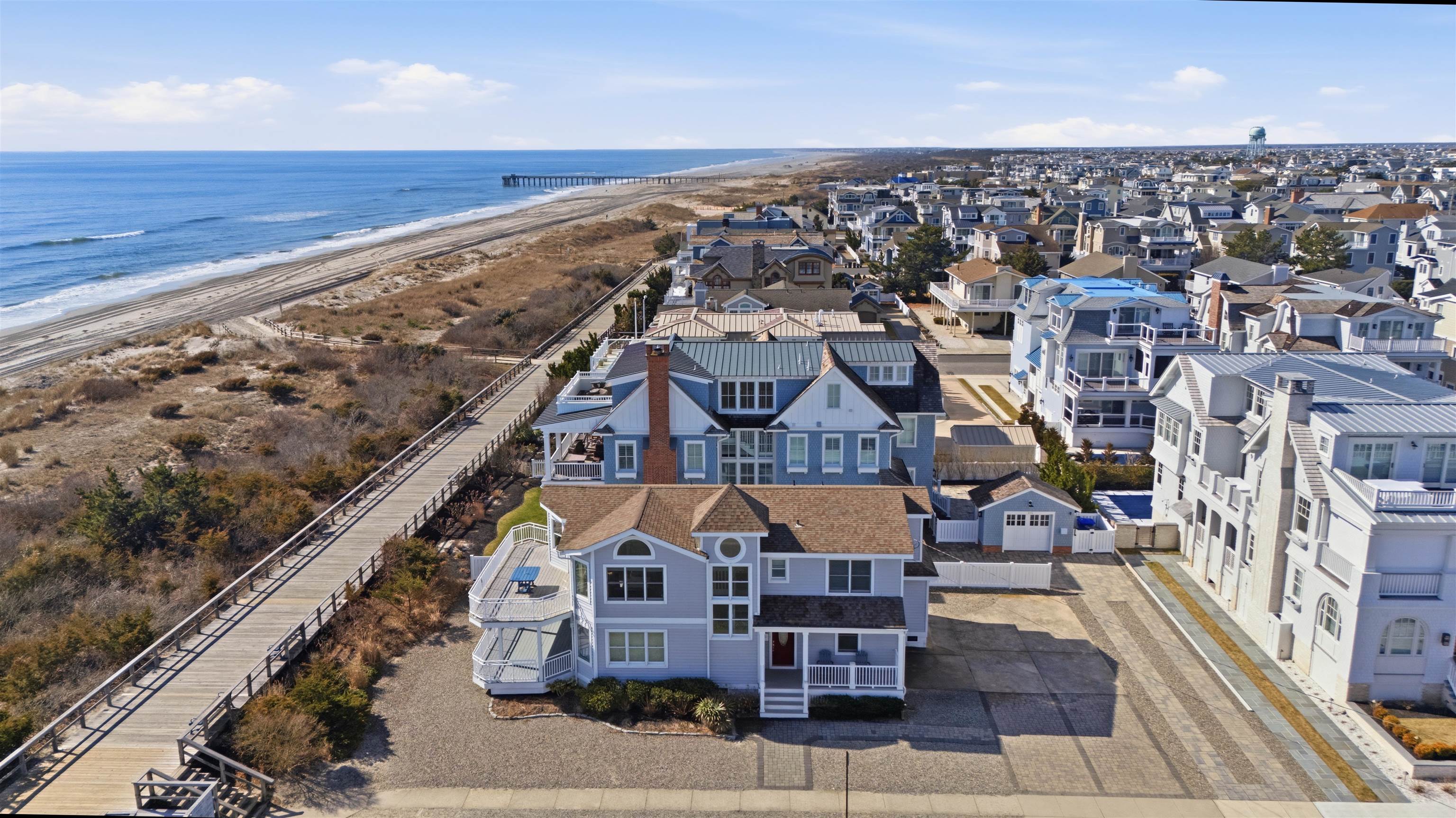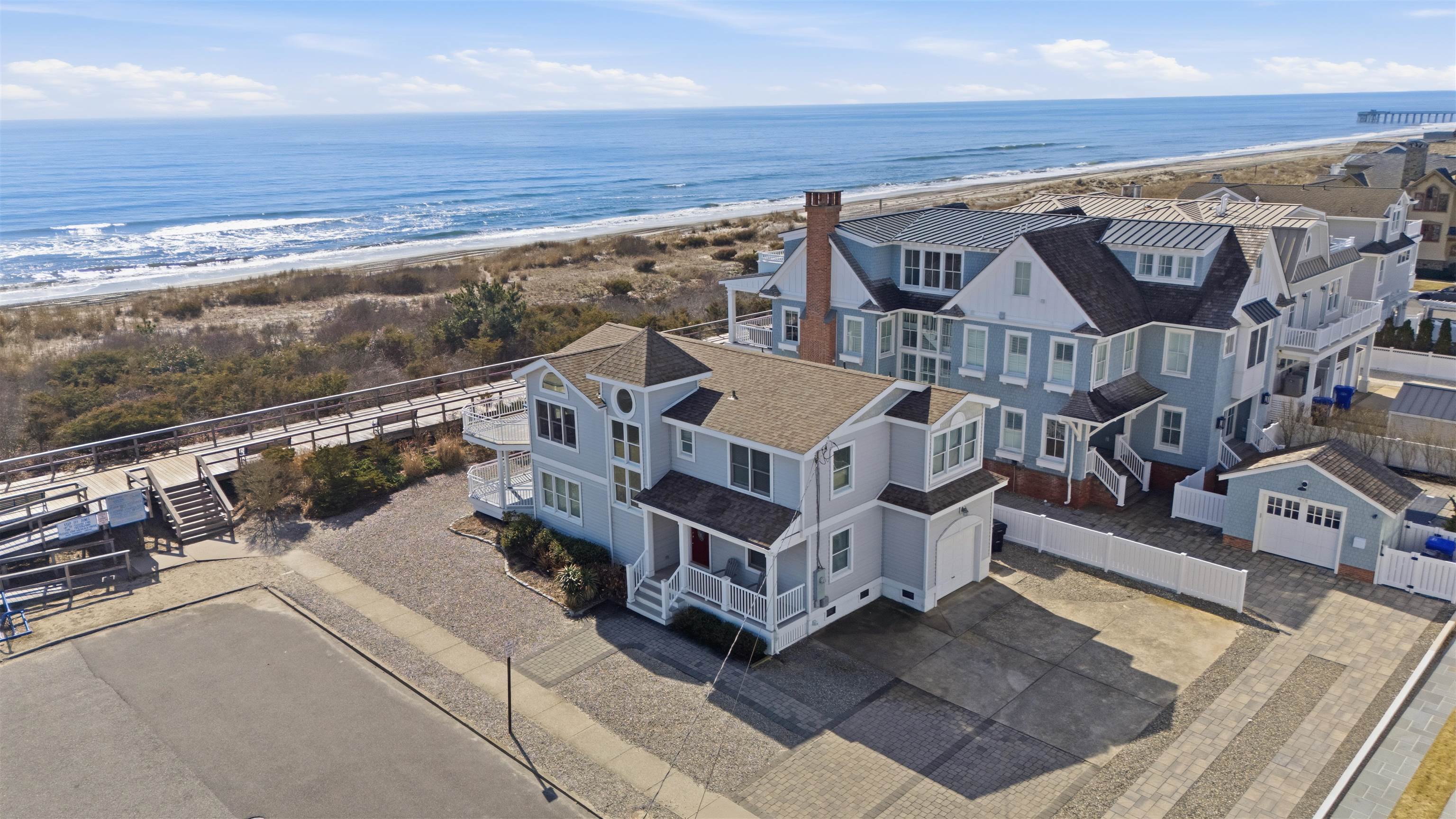 This premier corner beachfront property offers sweeping beach and white-water ocean views. The uniquely low dune topography behind the 23rd Street section of the boardwalk allows for some of the finest oceanfront sightlines in Avalon—an increasingly rare feature as dune elevations continue to rise. Centrally located just two cross streets from the heart of town, this property provides effortless access to Avalon’s entertainment, restaurants, shopping, and nightlife. The existing home, designed by OSK Architects, features an upside-down layout with five bedrooms and three-and-a-half baths. The first floor welcomes you with a spacious, sunlit foyer, three bedrooms, a hall bath, and a laundry room. Upstairs, a dramatic vaulted great room framed by expansive windows opens to an oversized sun deck showcasing breathtaking 180-degree views to the east, as well as north and south. The generously sized kitchen offers stone countertops, a tiled backsplash, stainless steel appliances, and peninsula seating for the entire family. The second level also includes a gracious primary suite with a private bath, an additional bedroom, a hall bath, and a powder room serving the main living area. For those considering redevelopment, this prime oceanfront parcel could accommodate up to 3,531 square feet of new construction, allowing for three stories of ocean views while still leaving space for a rear-yard pool. Surrounded by newly constructed, high-end residences and positioned just moments from town, this property combines a uniquely beautiful setting, staggering ocean views, and premier convenience. Schedule your private showing today.