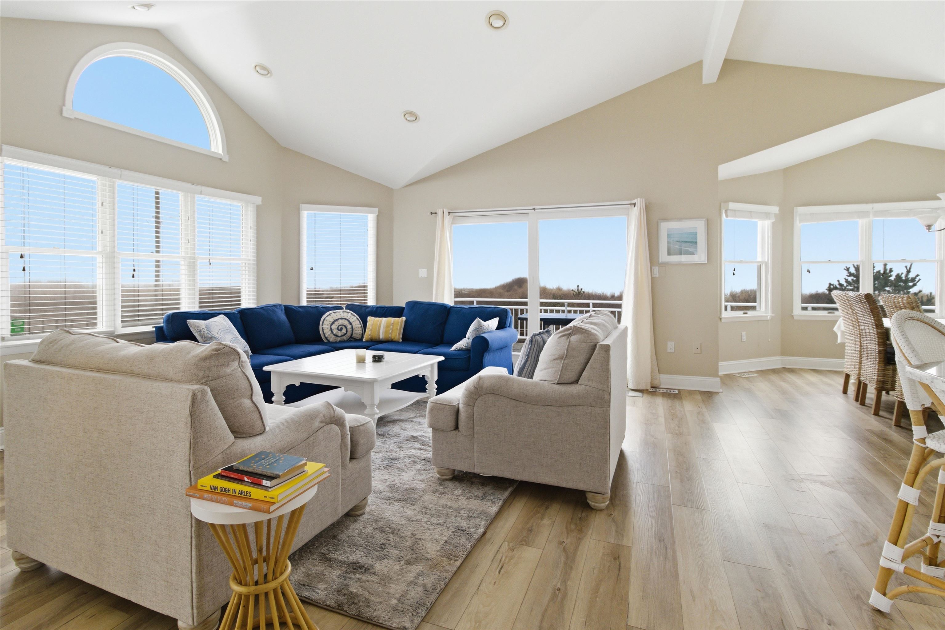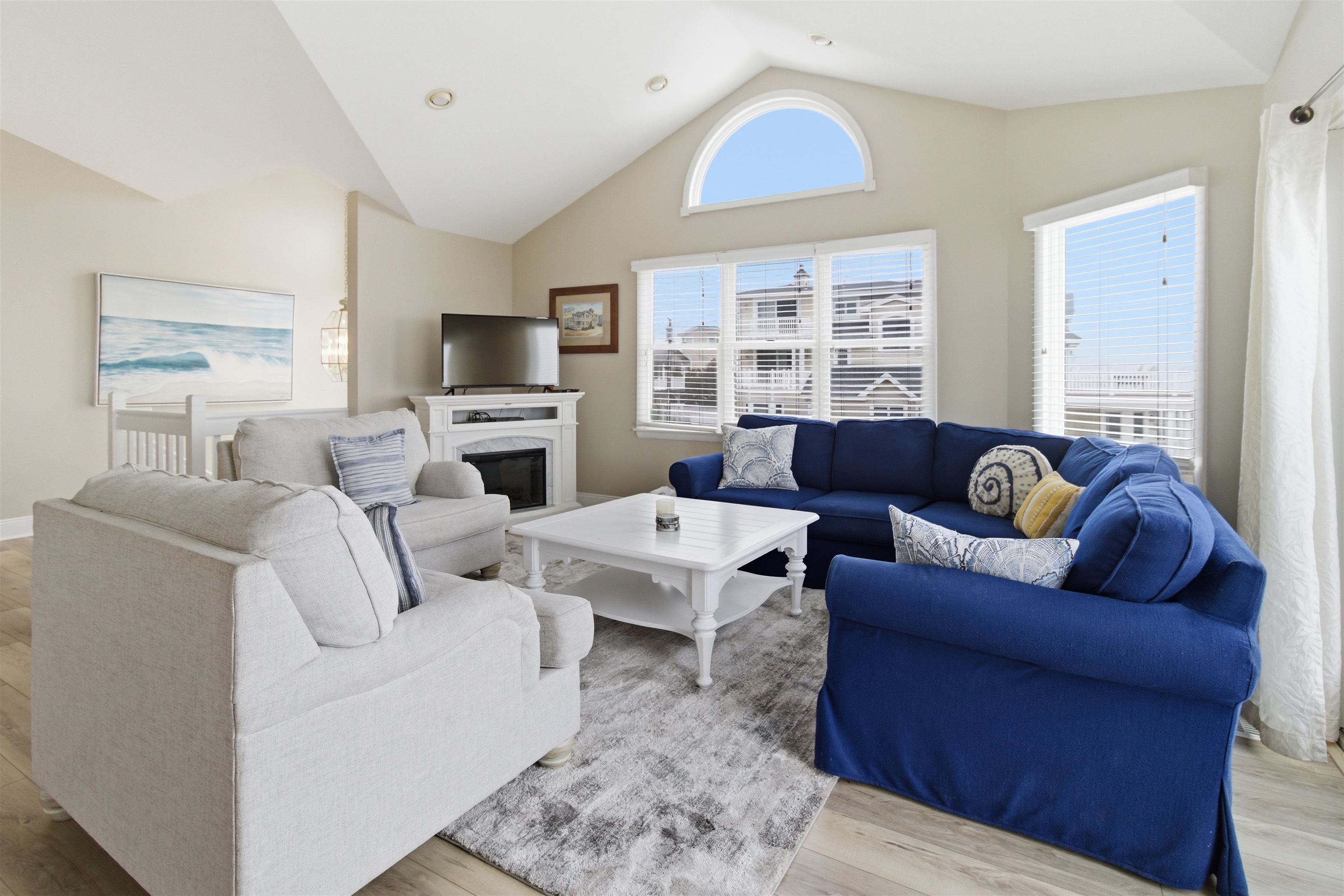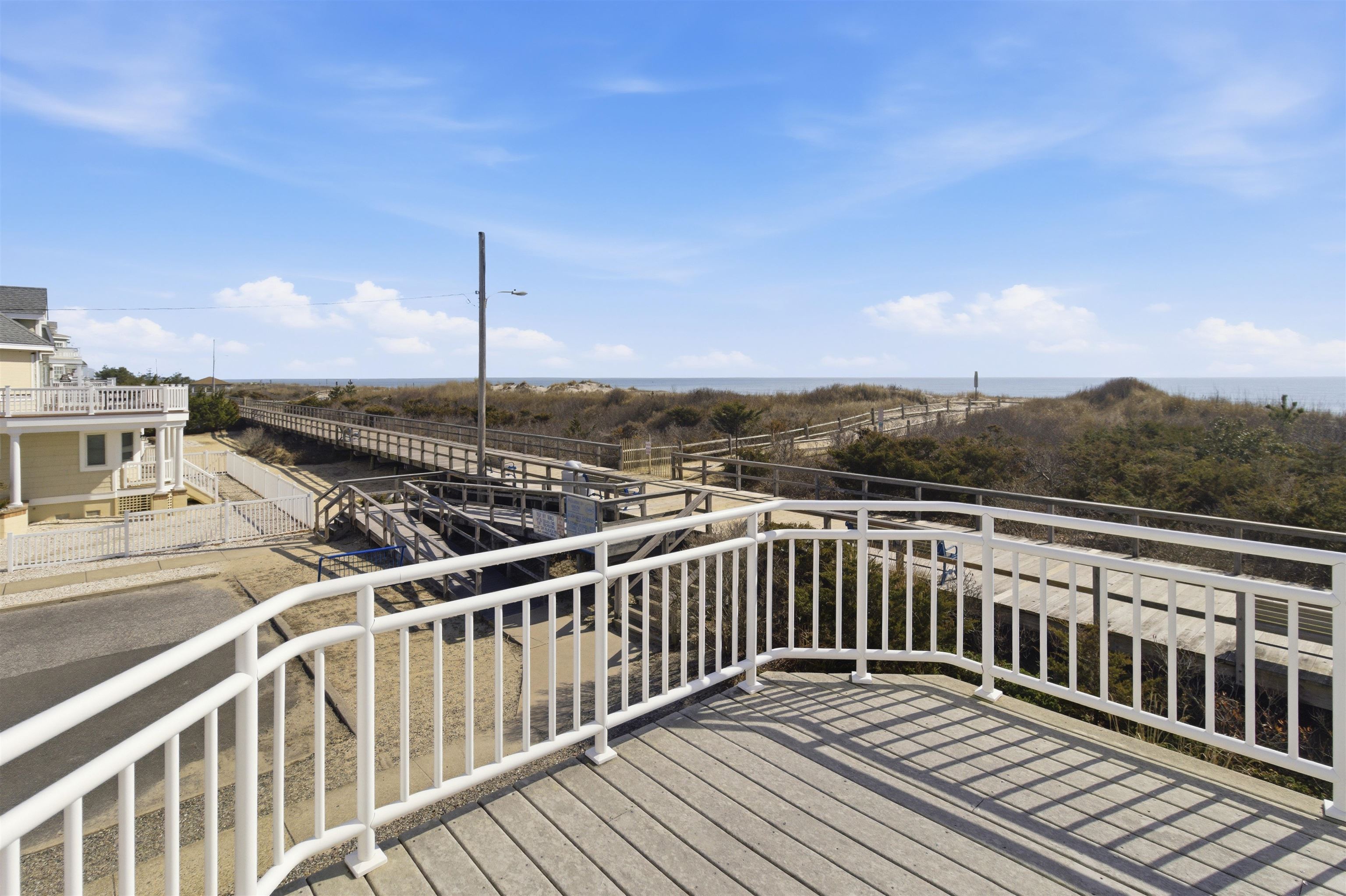 This premier corner beachfront property offers sweeping beach and white-water ocean views. The uniquely low dune topography behind the 23rd Street section of the boardwalk allows for some of the finest oceanfront sightlines in Avalon—an increasingly rare feature as dune elevations continue to rise. Centrally located just two cross streets from the heart of town, this property provides effortless access to Avalon’s entertainment, restaurants, shopping, and nightlife. The existing home, designed by OSK Architects, features an upside-down layout with five bedrooms and three-and-a-half baths. The first floor welcomes you with a spacious, sunlit foyer, three bedrooms, a hall bath, and a laundry room. Upstairs, a dramatic vaulted great room framed by expansive windows opens to an oversized sun deck showcasing breathtaking 180-degree views to the east, as well as north and south. The generously sized kitchen offers stone countertops, a tiled backsplash, stainless steel appliances, and peninsula seating for the entire family. The second level also includes a gracious primary suite with a private bath, an additional bedroom, a hall bath, and a powder room serving the main living area. For those considering redevelopment, this prime oceanfront parcel could accommodate up to 3,531 square feet of new construction, allowing for three stories of ocean views while still leaving space for a rear-yard pool. Surrounded by newly constructed, high-end residences and positioned just moments from town, this property combines a uniquely beautiful setting, staggering ocean views, and premier convenience. Schedule your private showing today.