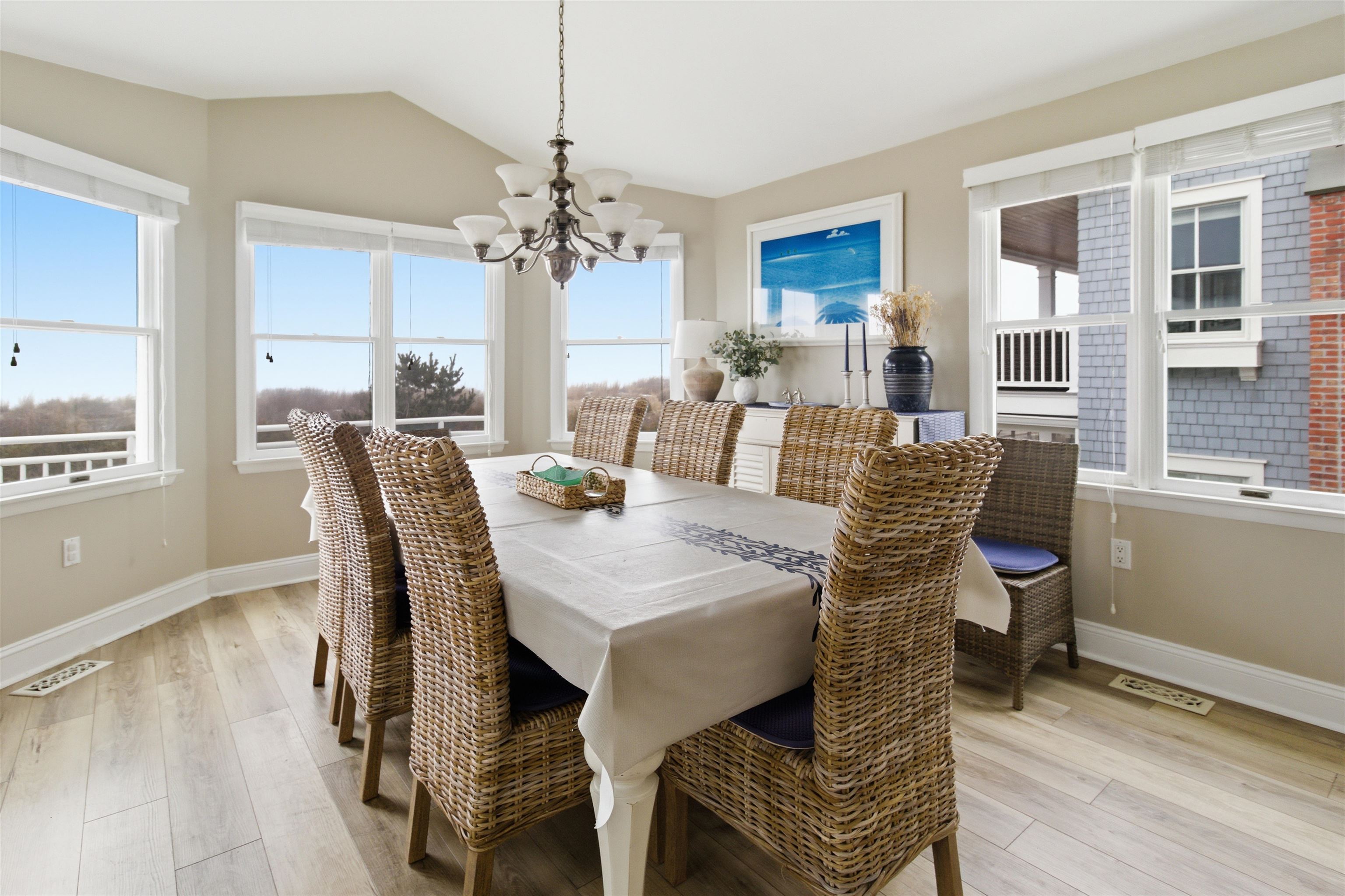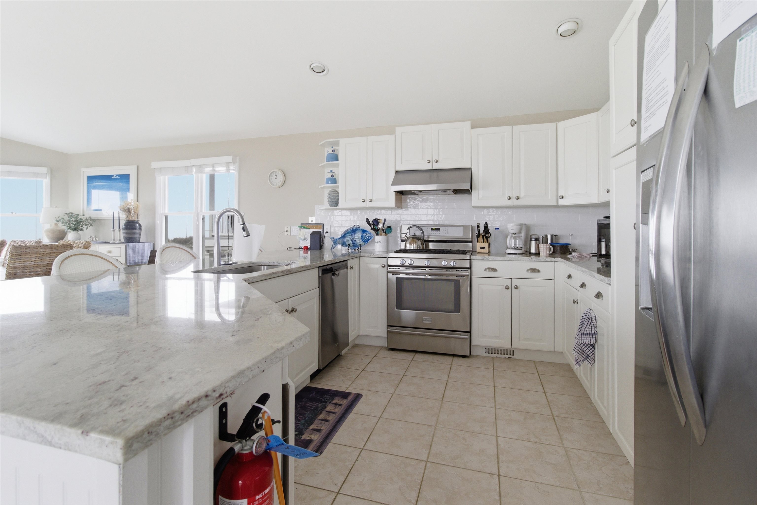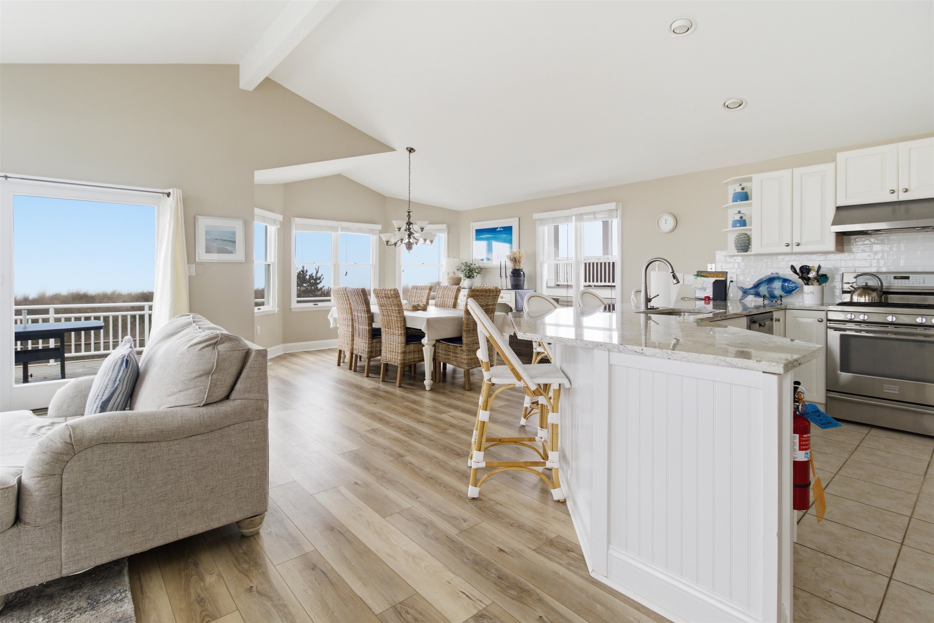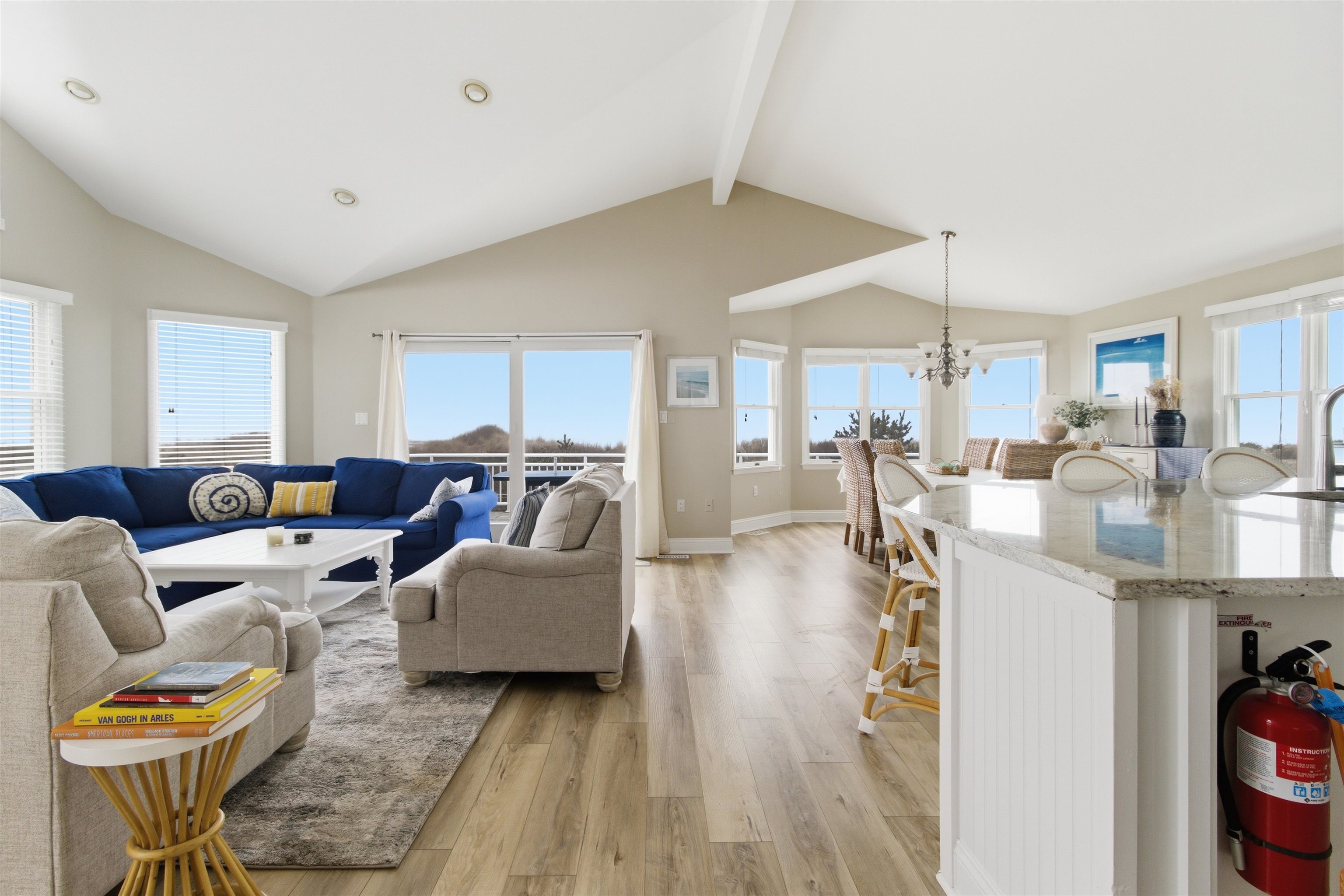 This premier corner beachfront property offers sweeping beach and white-water ocean views. The uniquely low dune topography behind the 23rd Street section of the boardwalk allows for some of the finest oceanfront sightlines in Avalon—an increasingly rare feature as dune elevations continue to rise. Centrally located just two cross streets from the heart of town, this property provides effortless access to Avalon’s entertainment, restaurants, shopping, and nightlife. The existing home, designed by OSK Architects, features an upside-down layout with five bedrooms and three-and-a-half baths. The first floor welcomes you with a spacious, sunlit foyer, three bedrooms, a hall bath, and a laundry room. Upstairs, a dramatic vaulted great room framed by expansive windows opens to an oversized sun deck showcasing breathtaking 180-degree views to the east, as well as north and south. The generously sized kitchen offers stone countertops, a tiled backsplash, stainless steel appliances, and peninsula seating for the entire family. The second level also includes a gracious primary suite with a private bath, an additional bedroom, a hall bath, and a powder room serving the main living area. For those considering redevelopment, this prime oceanfront parcel could accommodate up to 3,531 square feet of new construction, allowing for three stories of ocean views while still leaving space for a rear-yard pool. Surrounded by newly constructed, high-end residences and positioned just moments from town, this property combines a uniquely beautiful setting, staggering ocean views, and premier convenience. Schedule your private showing today.