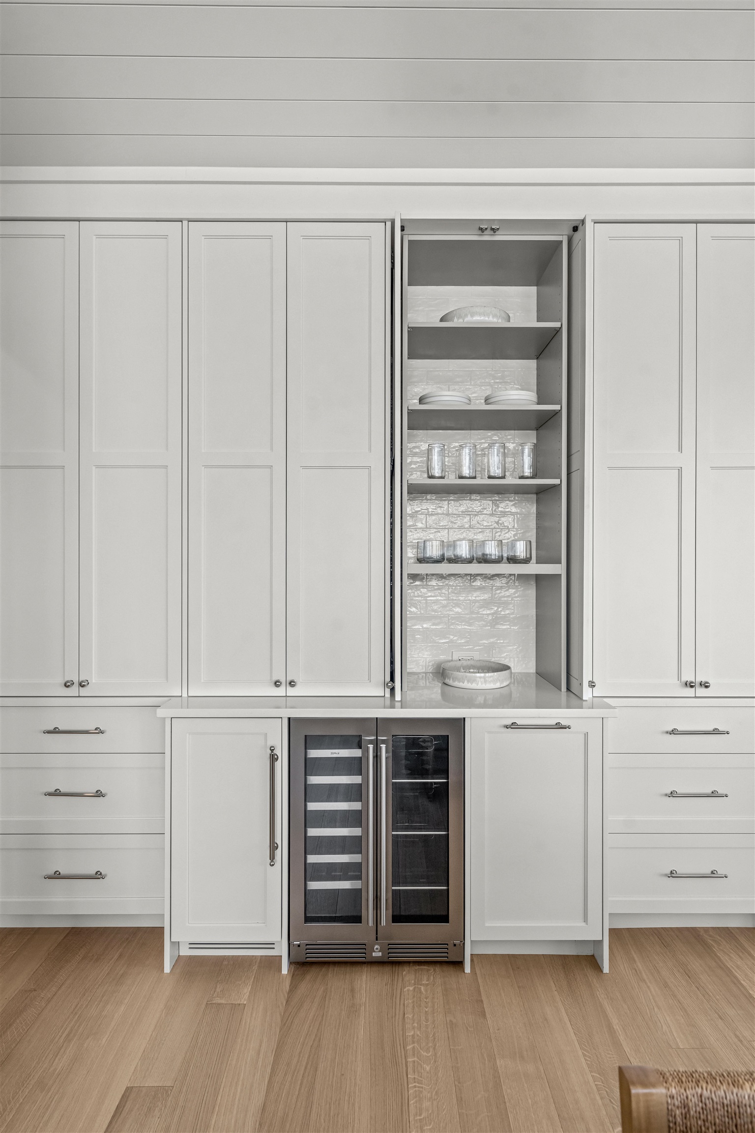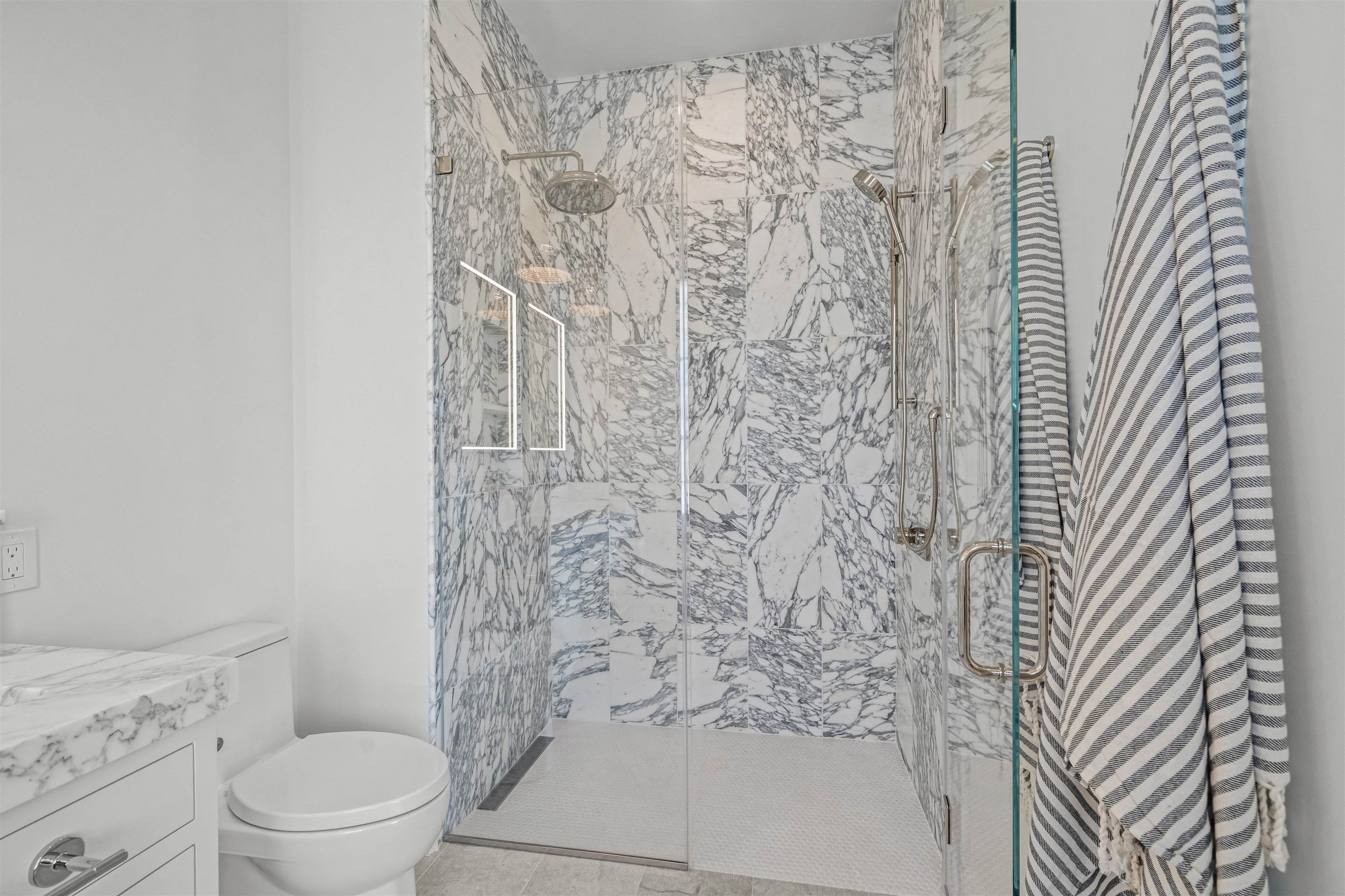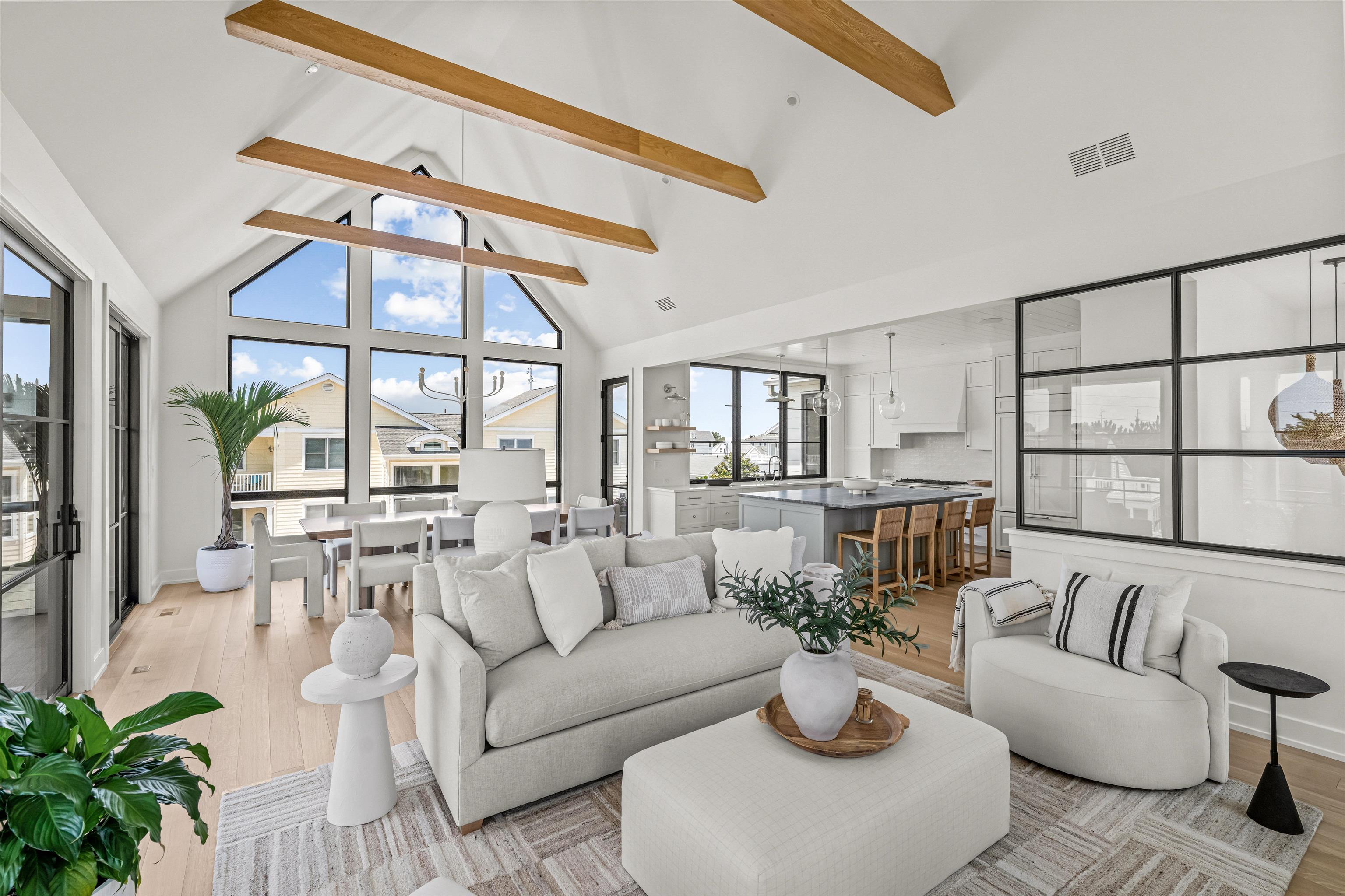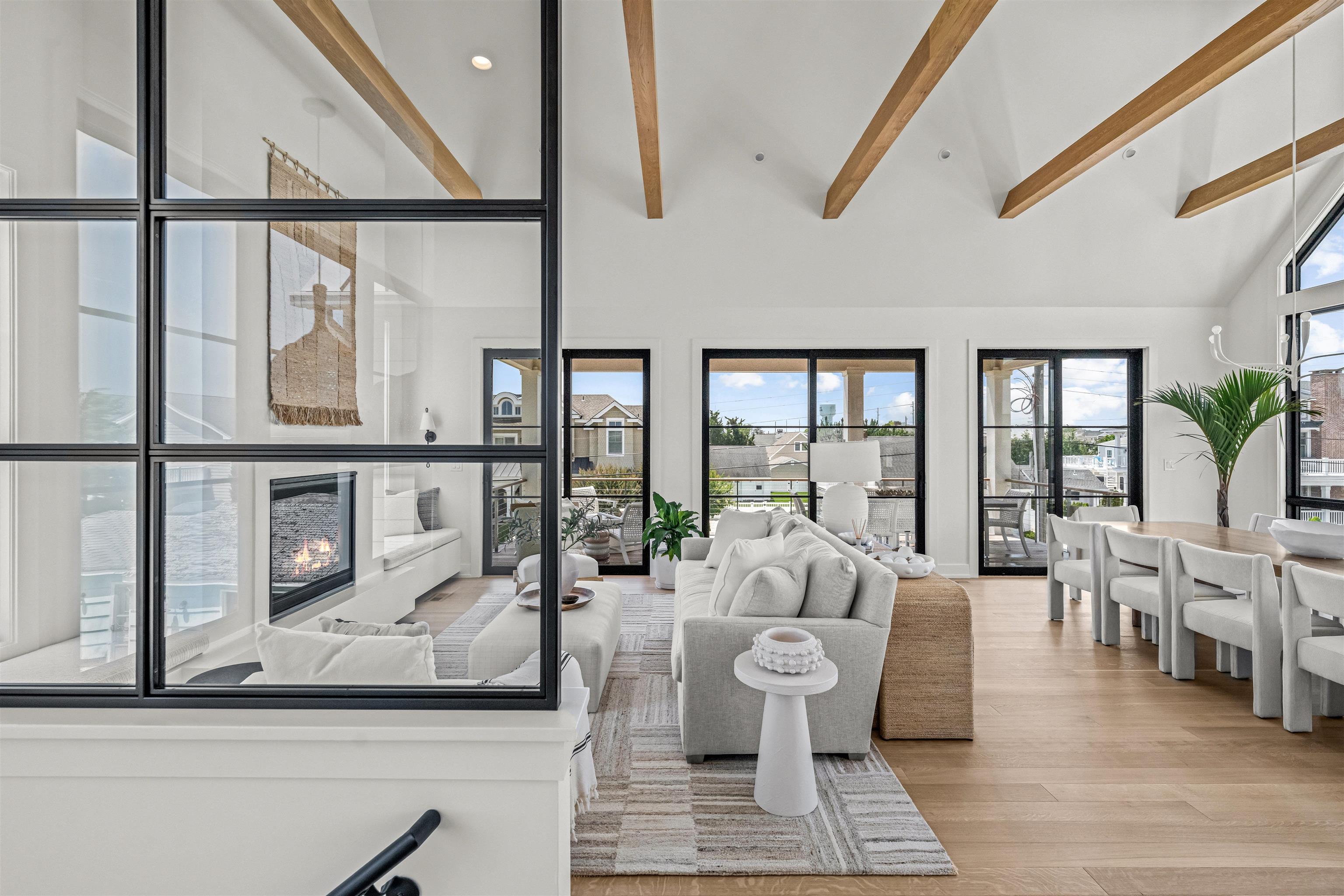 This brand new, fully custom home is brought to you by Wolstenholme Associates and WA Interiors in collaboration with McLaughlin Construction, this 5-bedroom, 5.5-bath home is offered fully designer-furnished and accessorized. The exterior finishes were selected with sustainability, aesthetics, and longevity in mind. The cladding includes a mix of Acre ship lap siding with 10” exposure and reSAWN’s MYNAH thermally modified radiata pine. A standing seam metal roof in a weathered zinc finish carries a 50-year warranty, while Marvin windows and doors in a gunmetal finish tie seamlessly together. All decks are finished in Ipe decking and stainless-steel cable railings capped in Ipe. The pool area is finished with Marmiro sandblasted marble and a PebbleSheen plaster pool surface. Inside, the first floor family room is accessed through an ALLI metal pocket door, includes custom built-ins by Village Handcrafted Cabinetry and a handmade Moroccan Zellige tile backsplash. Sliding glass doors open to a raised patio that overlooks the pool, seamlessly extending the living space outdoors. A first-floor bedroom with ensuite bath located at the front of the home, offering ocean breezes and access to a spacious front deck. It features European white oak flooring and Phillip Jeffries grass cloth wallpaper. The bathroom features a Carrara marble top vanity, Indigo Seville ceramic tile, and marble mosaic floors. The second bedroom also opens to the front porch, and is outfitted with shiplap millwork, a custom-built-in, and two custom Spanish-made pendant lights. The bathroom features AKDO’s Sio Cubic Plaid porcelain floor tile and marble mosaic accents. A third bedroom – complete with custom bunk beds – includes its own ensuite with a honed penny round tile floor and featured millwork. The powder room stands out with a custom floating concrete vanity, integrated concrete sink, and hand-painted Moroccan tile. Commissioned artwork by Kirby Fredendall adorns the foyer, while a fully equipped laundry room is thoughtfully placed between the bedrooms. Upstairs, the home opens to dramatic vaulted ceilings and sweeping ocean views. Subtle details include mud-in stair lighting, concealed Sonance speakers, and a Portola Paints plaster fireplace surround. The kitchen features a large island with leathered quartzite, Bertazzoni range, Sub-Zero refrigerator, and a full coffee bar with beverage fridge and ice maker. A custom maple dining table seats ten and overlooks the expansive living room. Through multiple sliding doors, a large front deck offers additional entertaining space and breathtaking views of the 89th Street beach path and the ocean beyond. The fourth bedroom serves as a work-from-home space, complete with queen-sized Murphy bed, custom built-ins, with an adjacent full bath. The primary suite is a tranquil retreat with custom built-ins, spa-style bath clad in Arabescato Altissimo marble throughout, and a low-iron glass shower enclosure. Both bedrooms open to a private rear deck with pergola, overlooking the backyard and pool. Additional highlights include polished nickel fixtures by Kohler and wide-plank European white oak floors. Located just one block from one of Stone Harbor’s finest beaches and only two blocks to dining and nightlife, this corner-lot home sits in one of the island's most desirable residential enclaves. For additional specs and amenities on this completely custom Wolstenholme Associates home.