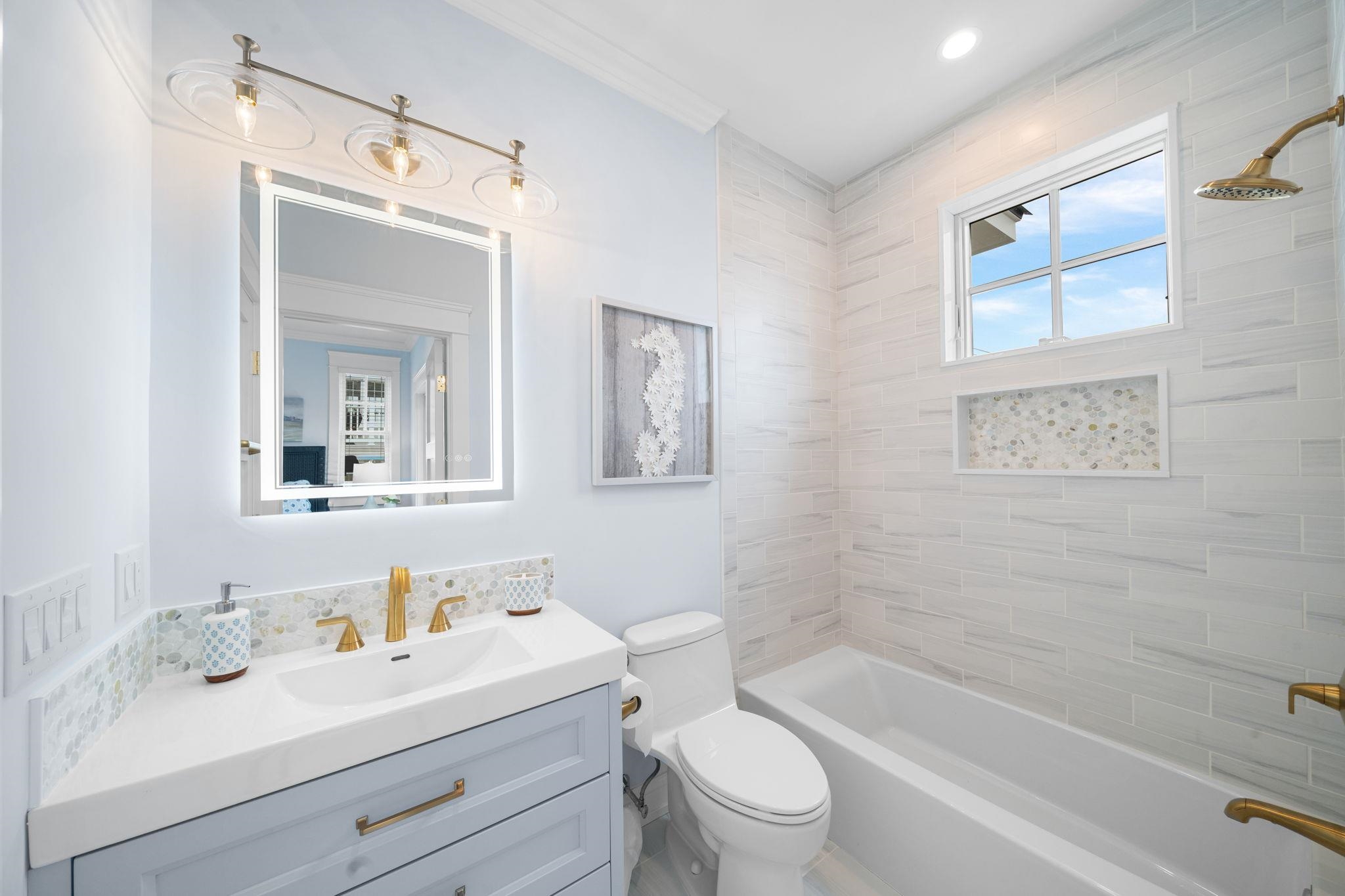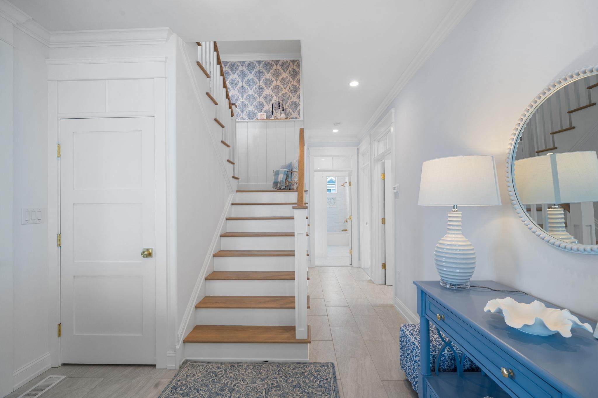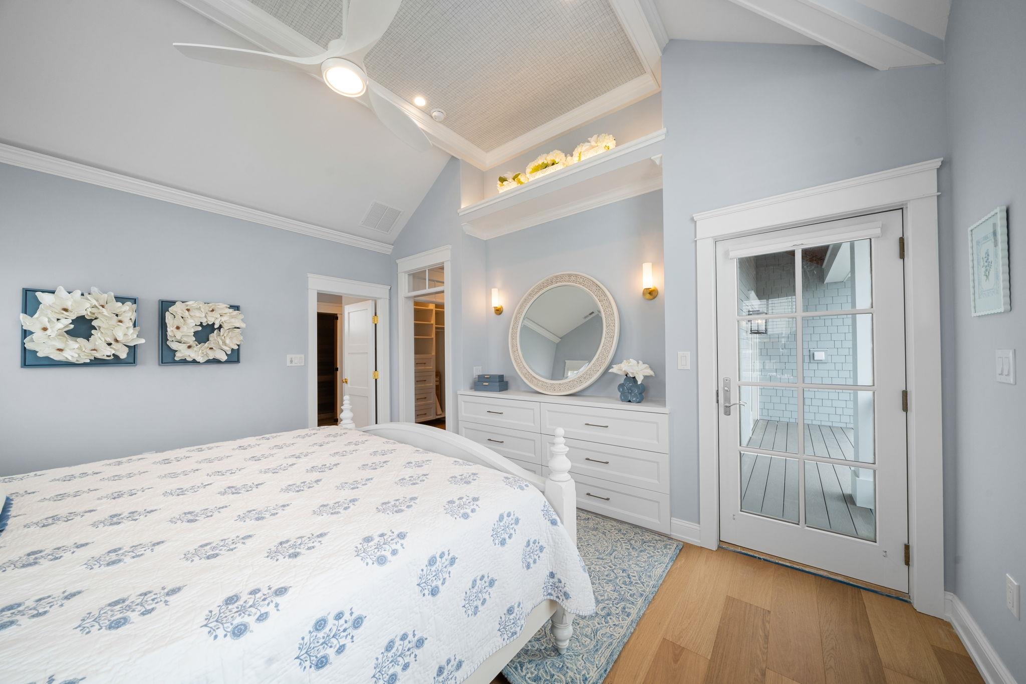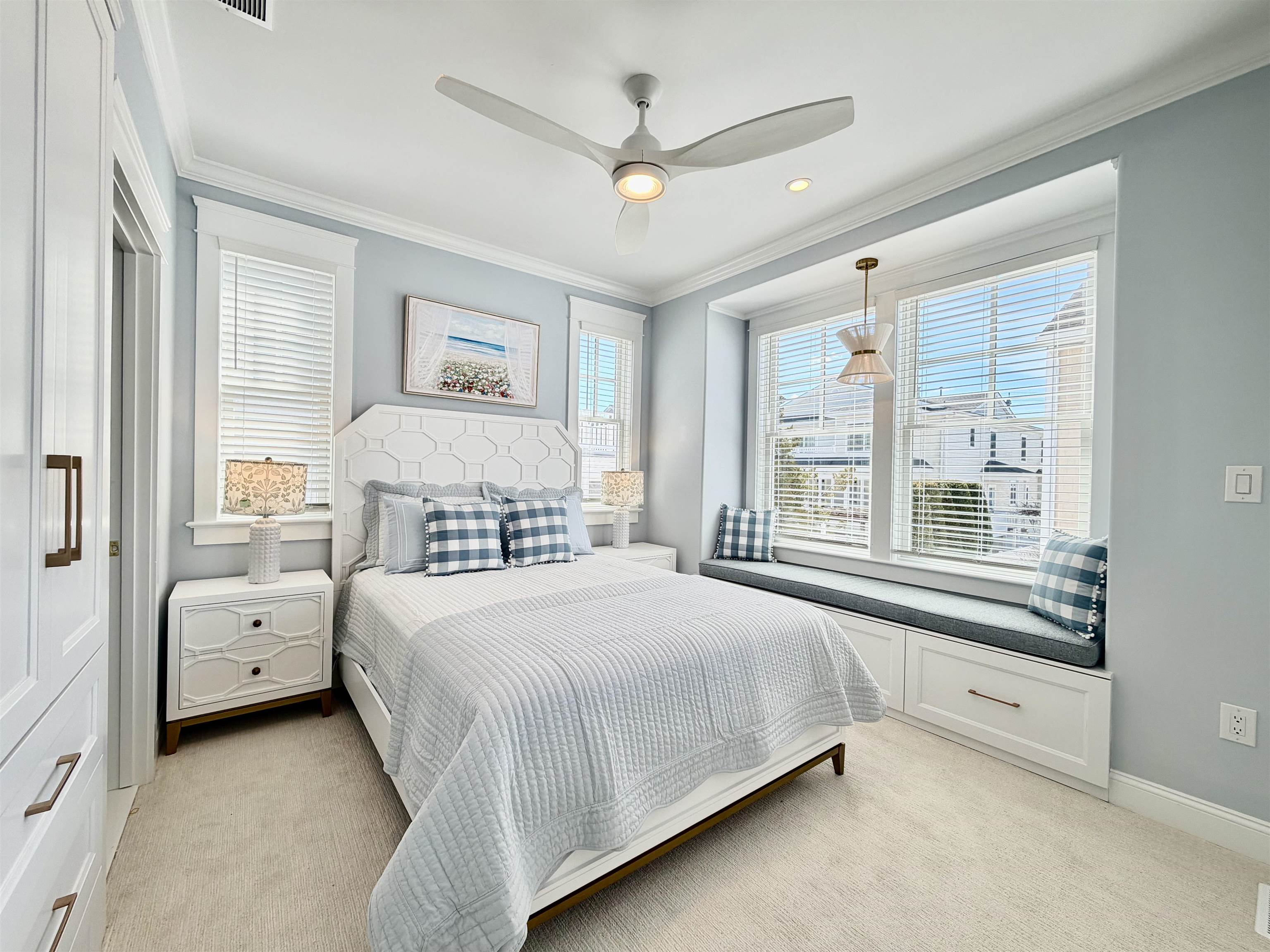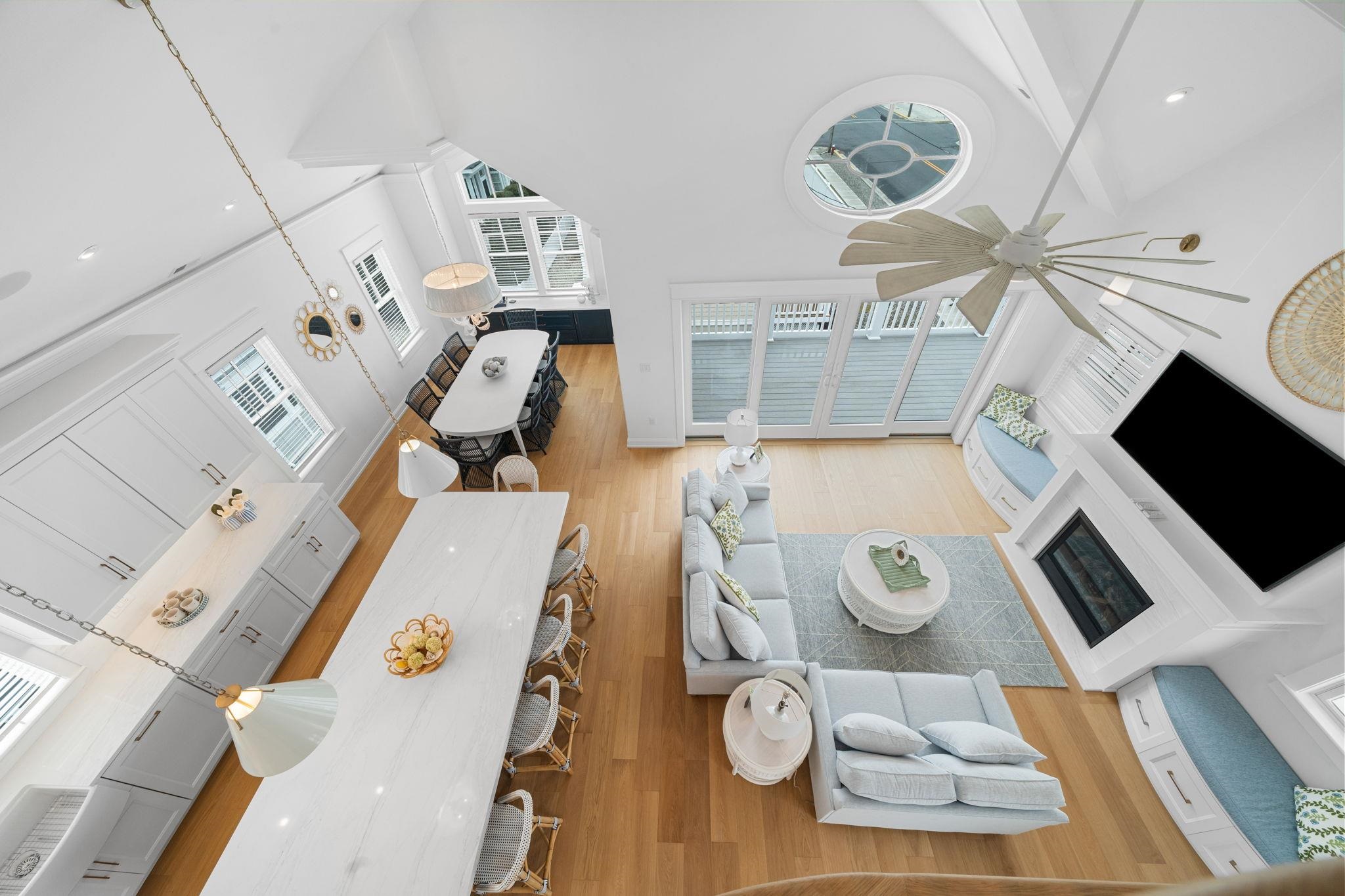Perfectly positioned on a prestigious corner in the heart of Stone Harbor, this exceptional new construction by SeaLuke Developers blends timeless coastal elegance, thoughtful architectural design, and beautiful bay and sunset views. Ideally located just a short walk to both the beach and town, the home offers an outstanding opportunity to enjoy one of the Jersey Shore’s most sought-after communities. Designed with a classic upside-down layout to maximize light and views, the home features five bedrooms, three full baths, and two half baths, beautifully appointed with decorator furnishings and high-end finishes throughout. Custom millwork, tasteful wallpaper accents on the ceilings and stairwell, and carefully curated design details create a sophisticated yet relaxed coastal aesthetic that feels both refined and welcoming. The first level offers four spacious and beautifully designed bedrooms, providing comfortable accommodations for family and guests. A standout feature is the custom bunk room, which includes two built-in bunk beds with four twin beds and integrated storage—perfect for children while still comfortably sized for adults. This level also features an inviting secondary family room, creating a flexible living space ideal for guests, movie nights, or relaxing evenings after a day at the beach. The expansive main living level serves as the heart of the home, offering a bright and open great room where the kitchen, dining, and living areas flow seamlessly together. The chef’s kitchen is beautifully appointed with Sub-Zero and Wolf appliances, a wine cooler, microwave drawer, and an oversized quartz island with seating for five. Built-in seating in the living room and a thoughtfully designed dining buffet provide both style and functionality, making entertaining effortless. Large sliding doors open to wraparound decks and covered porches that extend the living space outdoors and capture beautiful elevated bay views above Third Avenue. These outdoor areas create wonderful spaces for gathering with family and friends, enjoying refreshing coastal breezes, and taking in Stone Harbor’s spectacular sunsets. The luxurious primary suite offers a peaceful private retreat, complete with a spa-inspired bathroom featuring a spacious walk-in shower, sauna, and smart toilet—creating a relaxing environment designed for comfort and wellness. The third floor includes a built-in office nook that enjoys lovely bay views, offering an ideal spot for working remotely or enjoying a quiet reading space. A Juliet railing overlooking the great room below adds a striking architectural detail while enhancing the home’s sense of openness and natural light. Additional highlights throughout the home include six custom window seats with upholstered cushions, custom built-ins in every bedroom, and generous walk-in attic storage. Extensive storage is also available beneath the home and under the covered porches, featuring a concrete floor and nearly six-foot ceilings—perfect for storing bikes, beach gear, and outdoor equipment. The home is wired for electronics and includes two large-screen televisions, one of which is a Samsung Frame TV that blends beautifully with the home’s interior design. The property has also been thoughtfully engineered to accommodate a future exterior elevator should the next owner desire one. Outside, a private heated elevated swimming pool with fencing and privacy provides the perfect place to unwind or entertain after a day at the beach. Ideally located less than three short blocks from Stone Harbor’s wide, white sandy beaches and a short stroll to the town center, the home offers convenient access to charming cafés, boutique shopping, restaurants, ice cream shops, parks, a movie theater, and a luxurious full-service spa overlooking the bay. Combining exceptional design, quality construction, and a highly walkable location, this beautiful Stone Harbor home offers the very best of coastal living and is perfectly s